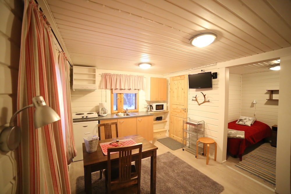 Lovely cosy cabin in great location next to river, spotlessly clean. Owner very helpful, lit lovely fire in outdoor shelter for us to view Northern lights. Great spot for viewing Northern lights as overlooks river and very little light pollution.
