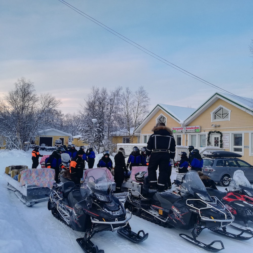 We rode Jbus from Inari to Nuorgam holday village and the bus stopped right at reception. We stayed two nights in a comfortable self catering apartment and paid for a delicious buffet breakfast. As we didn't have a car we arranged with Raimo to take us us for a day trip into Norway reaching Varanger bay. Thoroughly enjoyable.