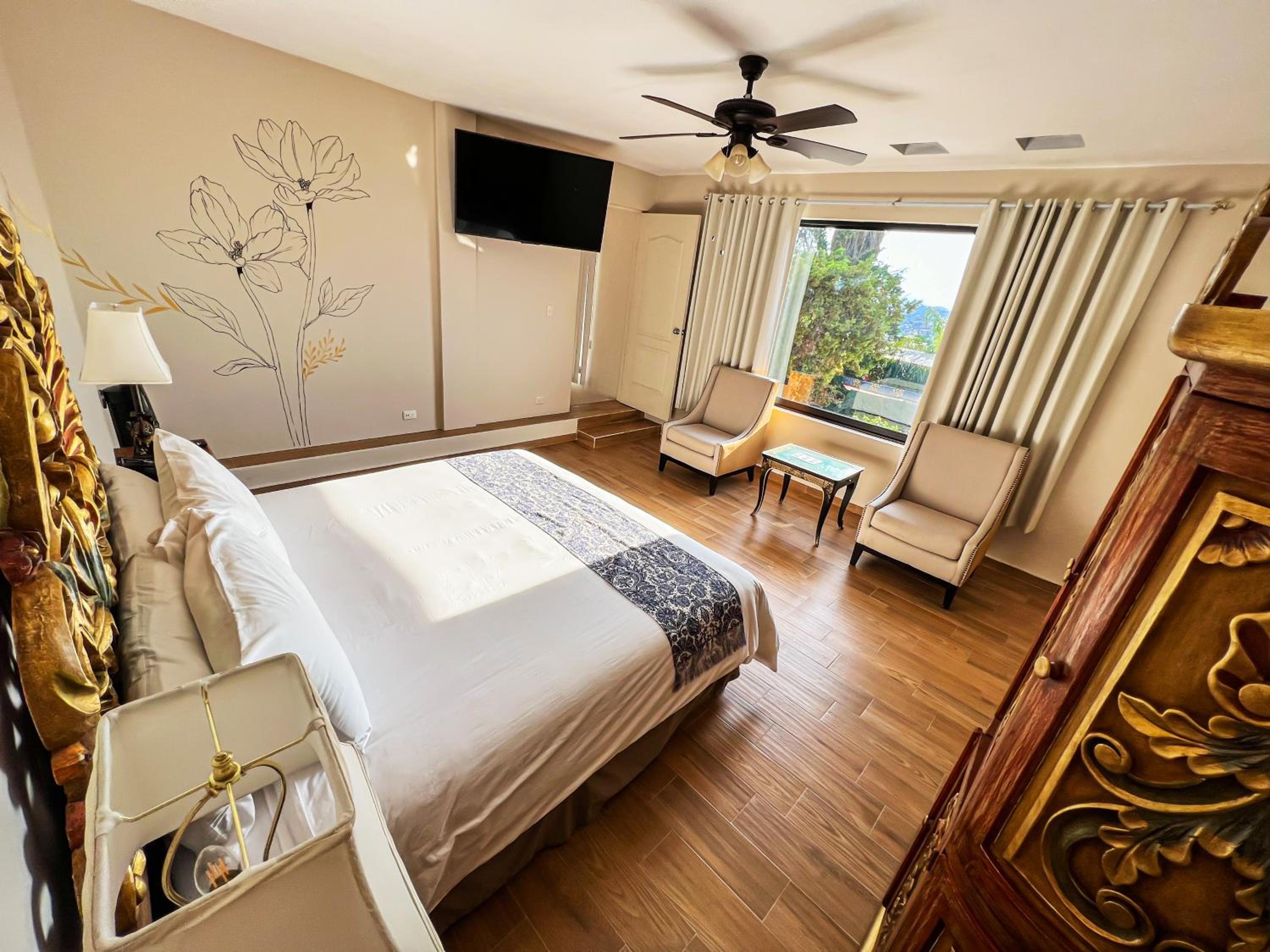 We loved our stay at Hacidena de las Flores! It's in an absolutely beautiful hacienda that looks even nicer than the photos. Our room was very large and spacious, with a comfortable bed, large bathroom, and TV with Netflix. We particularly enjoyed using the pool during the day which was heated, and the views of the Parroquia de San Miguel Arcángel. The property is in a great location and we felt like it was great value for the price we paid. We felt so relaxed here and would definitely stay again!