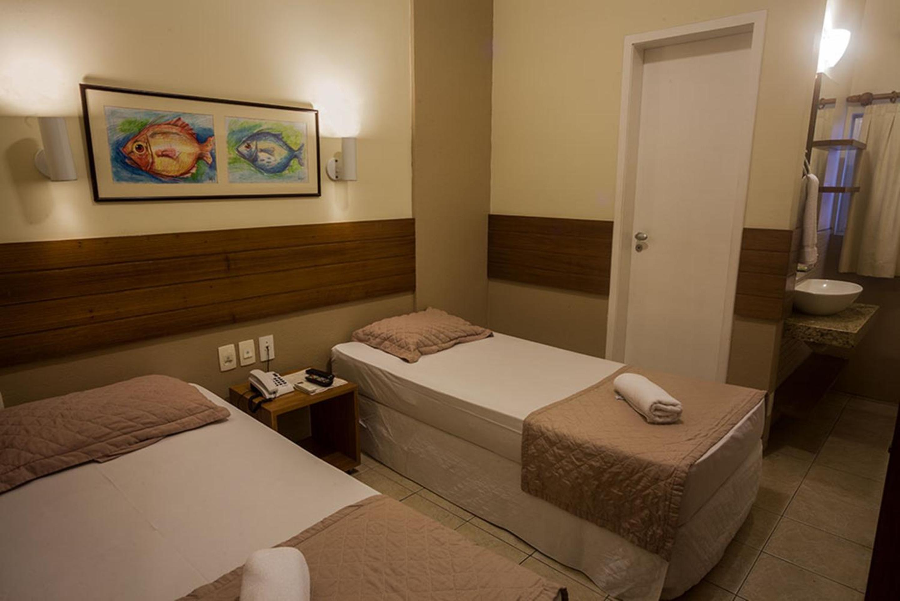 The simply furnished rooms at Portal Da Praia Hotel feature a TV, air conditioning, a minibar, and a private bathroom, ensuring a cozy and relaxing stay for guests.