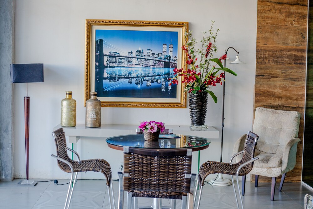 Quarto proporcional ao valor pago. Ar condicionado ruidoso, e pouco potente...quarto pequeno e com opções de TV apenas os canais abertos...ainda em reforma...não terminaram ainda. Café da manhã honesto, nada excepcional. Local isolado, sem opções de restaurantes nas proximidades. Conveniente apenas para quem está de carro. Estadia barata, mas bem simples...apenas para dormir. Boa localização para quem vem para compras no Paraguai, acesso fácil.