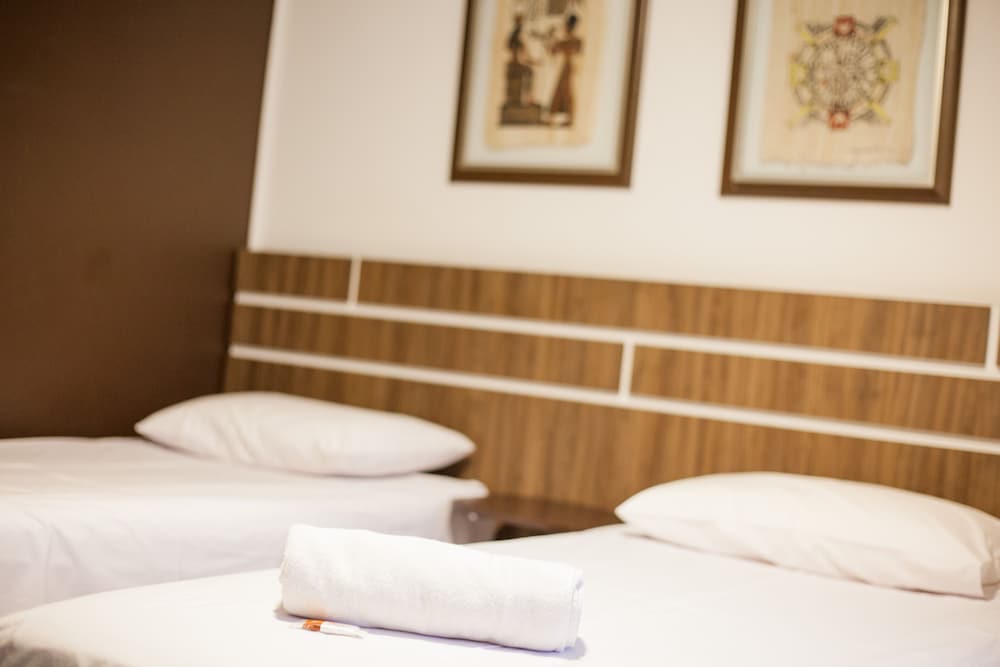 O hotel pelo que se percebe está com uma reforma paralisada há anos! Os banheiros imundos, limpam o vaso e a pia, os rejuntes e box com aparência de que não são esfregados há meses. As toalhas são muito duras, quase uma lixa.Aparenta que não tiram o sabão.Reservei 2 quartos e os dois deram problema no chuveiro.Tivemos de tomar banho frio até resolverem.A capas do box da cama não veem água há meses.A TV conta com antena pendurada e pega poucos canais.Um cheiro de mofo ou bolor é muito forte nos quartos.O hall de entrada está revitalizado,quase engana.Restante do hotel mto antigo!Quando arrumaram o chuveiro,desligaram o ar condicionado,q por sinal muito antigo e barulhento.O do nosso quarto ficou desligado e o do quarto ao lado parecia q estava dentro do nosso de tão barulhento.A garagem faz fundos com o hotel num terreno q interliga pela recepção porém sem cobertura para os carros e iluminação adequada.Já fiquei em hotéis bem mais antigos,mas ser antigo não significa não ser limpo.Se a limpeza fosse melhor o restante passaria quase despercebido.No café da manhã o q sobre dos bolos é colocado no dia seguinte,ficaram duros.Café da manhã razoável mas poderiam substituir a salsicha por ovos mexidos por ex, dia sim dia não. Pois p/ quem fica mais dias a opção da salsicha não agrada a todos.Falta uma coisa simples;1 papel no quarto informando a voltagem das tomadas,horários de café da manhã,senha do Wi-Fi e informações úteis,p/ não termos q/ ficar perguntando. A localização agrada!!