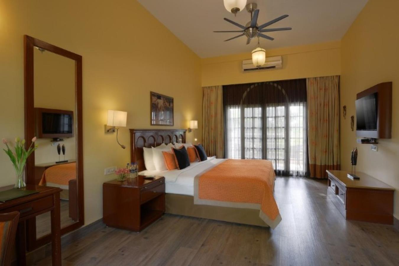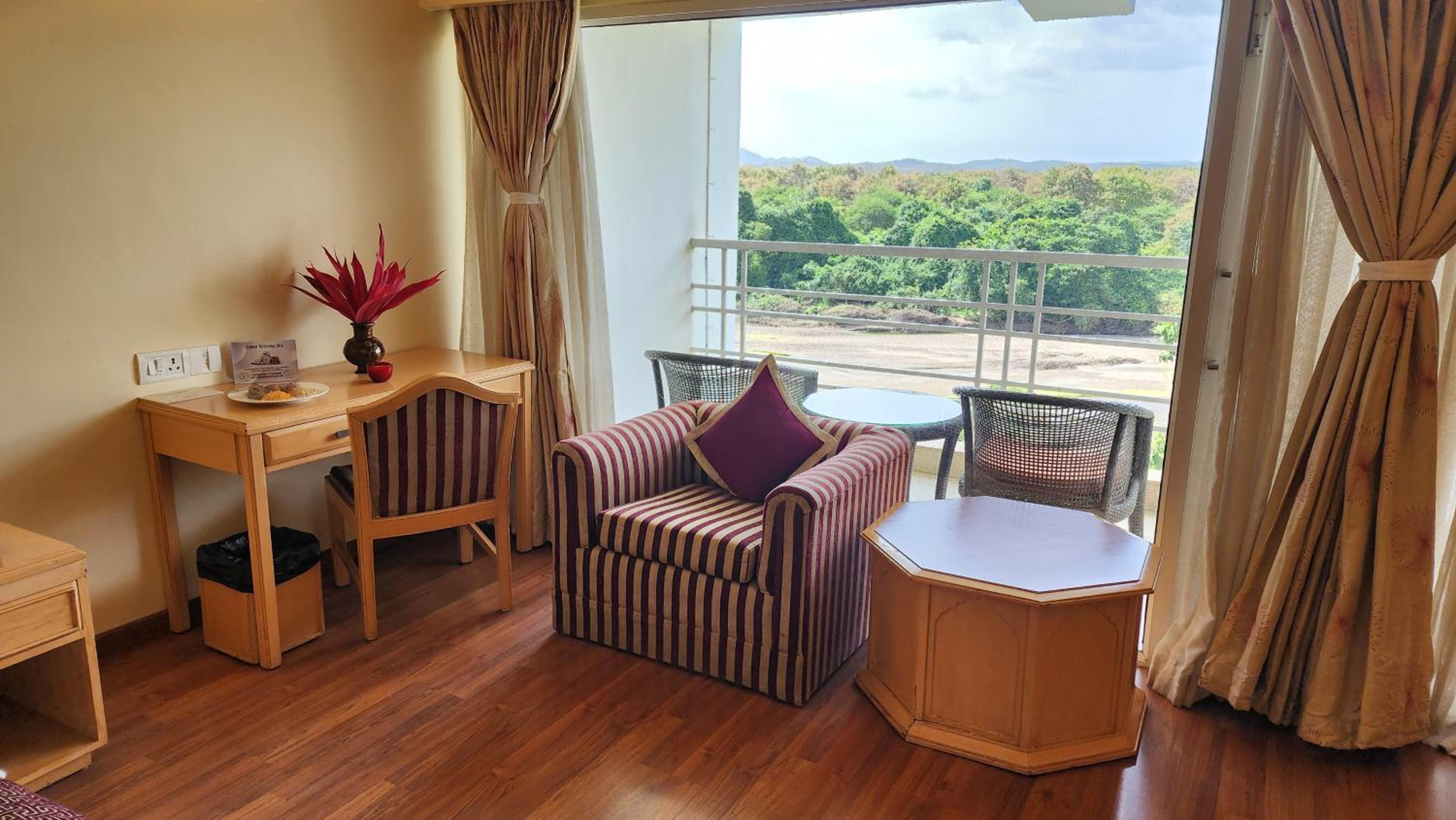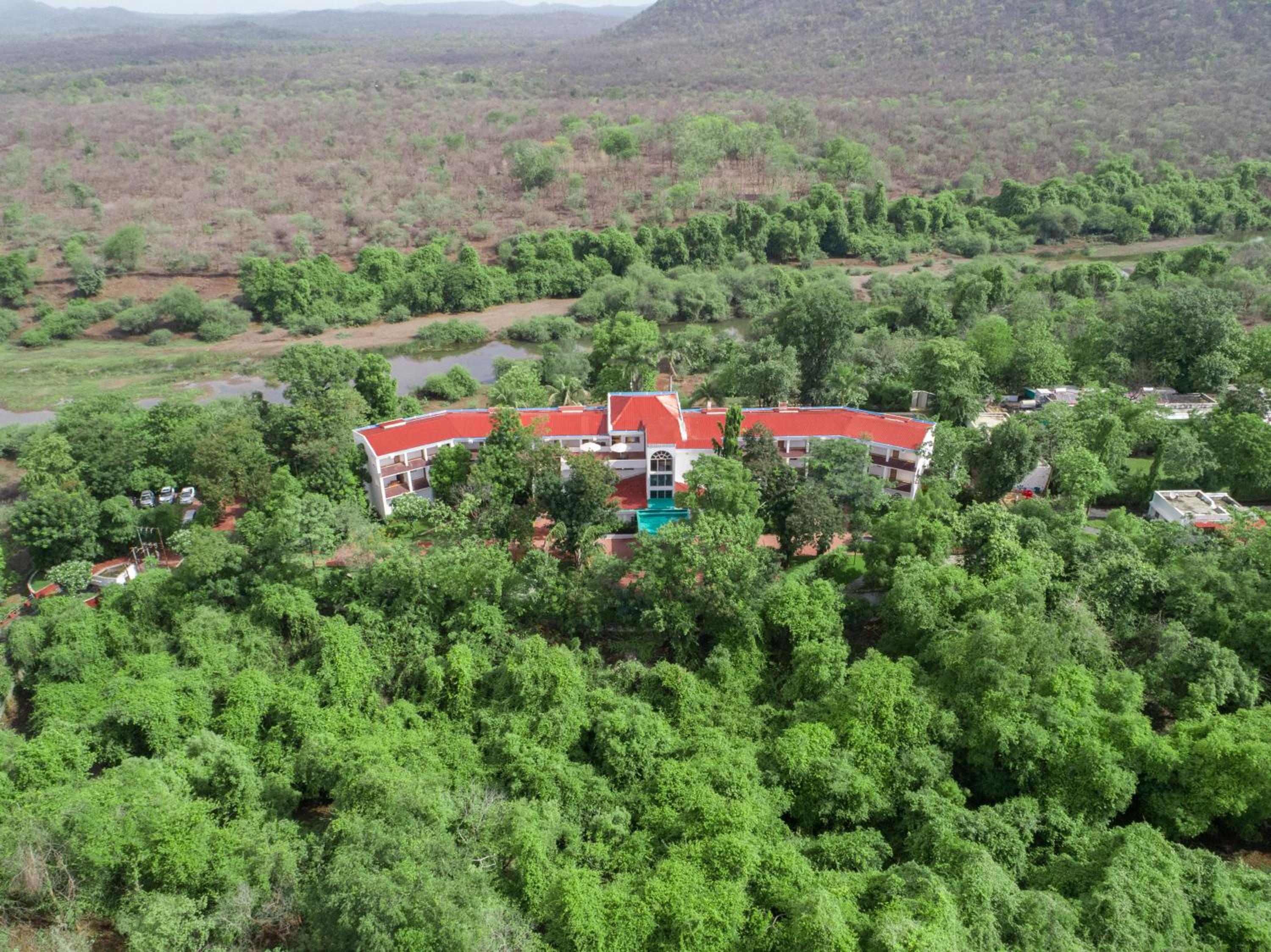Scenic Views and Relaxation: Nestled by Gir Forest and Hiran River, enjoy breathtaking forest views from your balcony. Unwind at the spa, take a dip in the outdoor pool, or relax in the open-air library lounge.