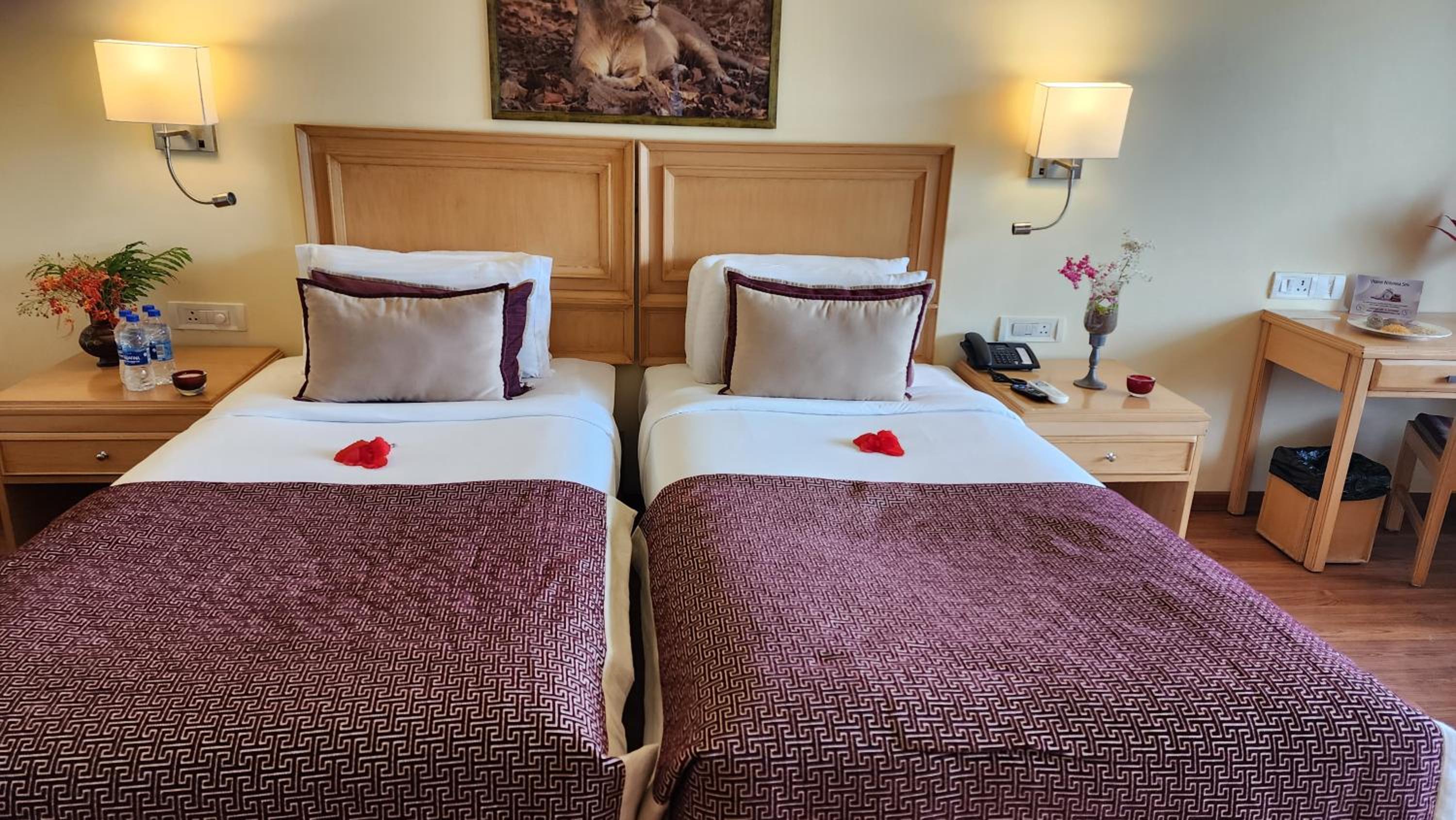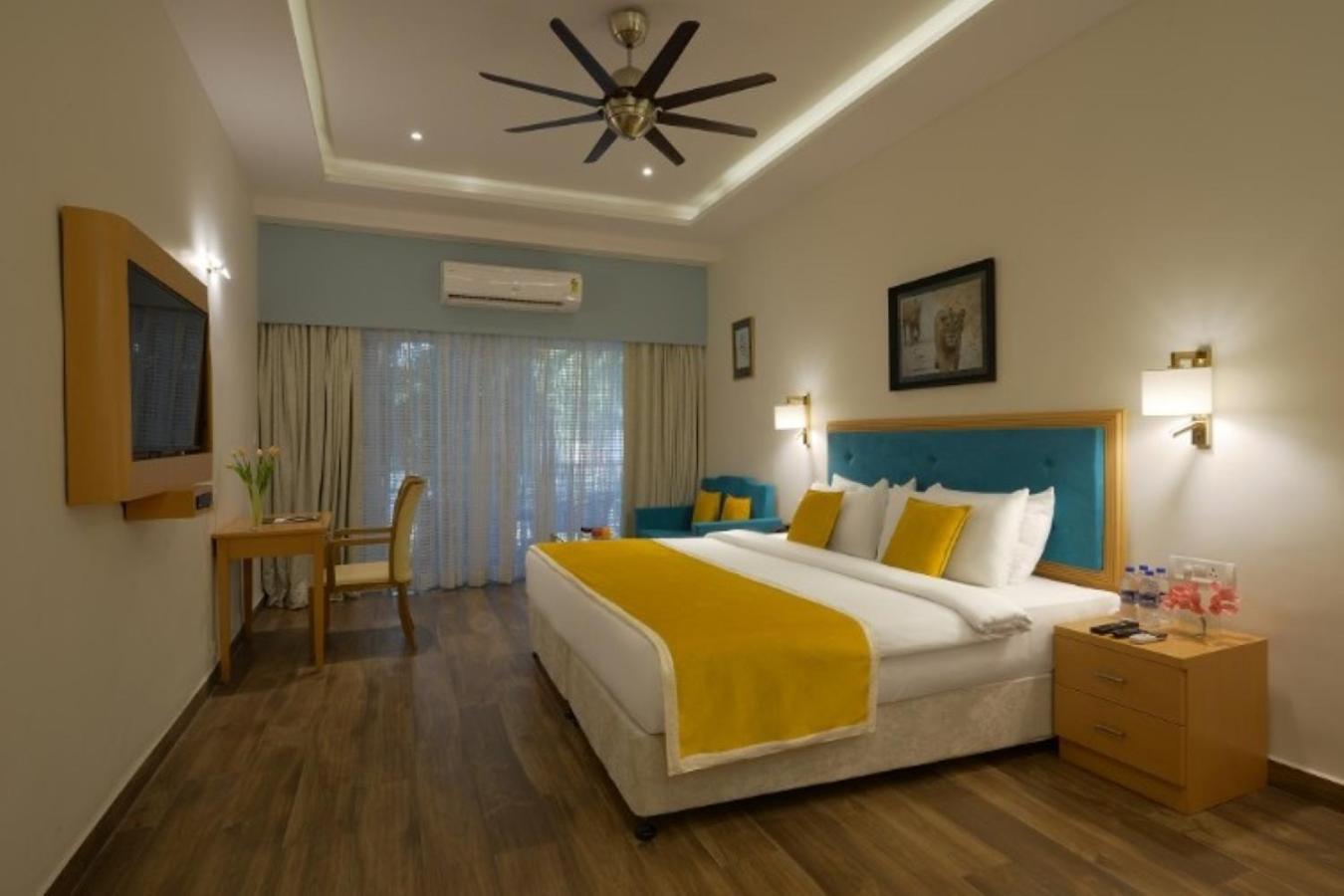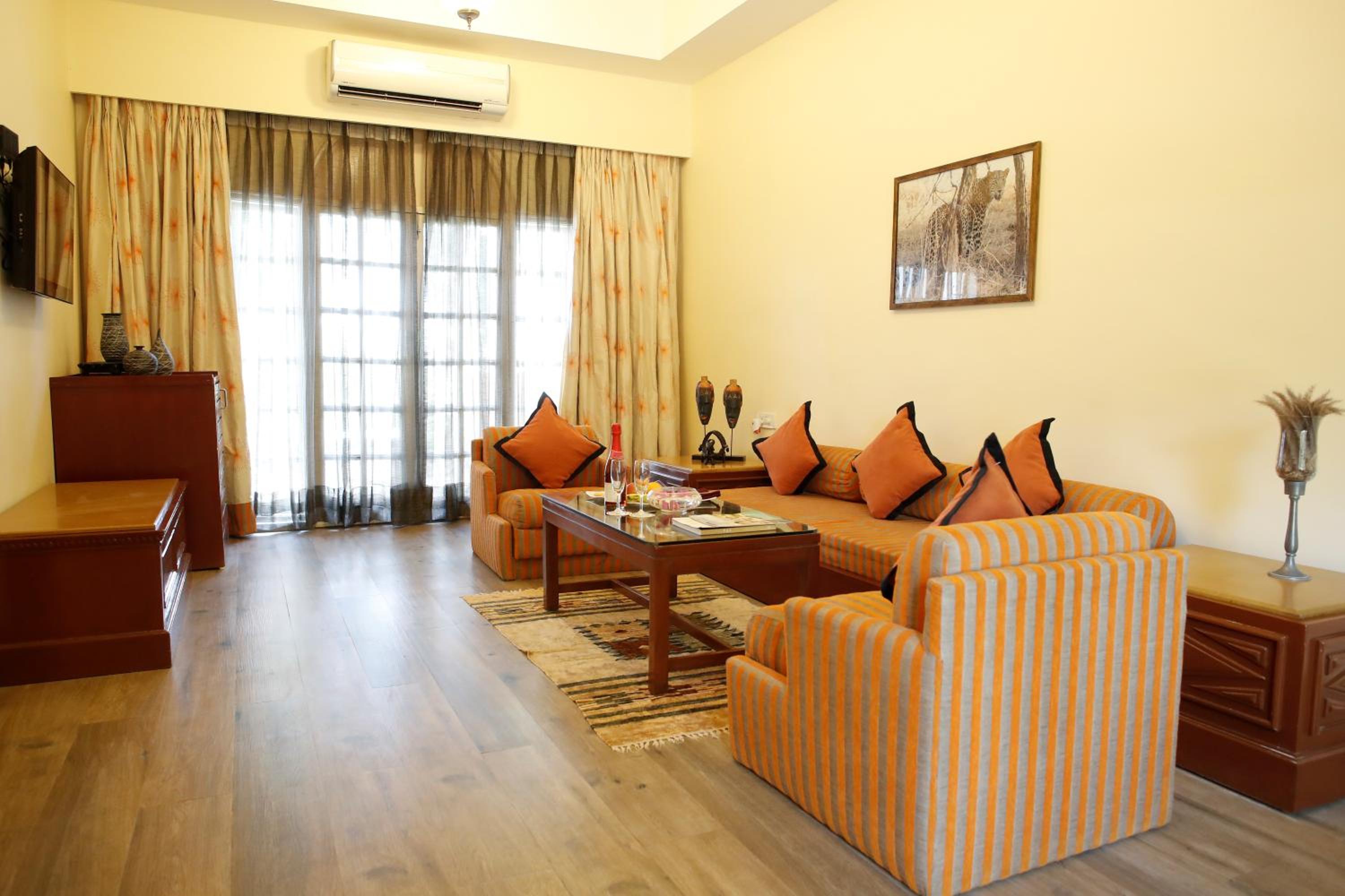 Scenic Views and Relaxation: Nestled by Gir Forest and Hiran River, enjoy breathtaking forest views from your balcony. Unwind at the spa, take a dip in the outdoor pool, or relax in the open-air library lounge.
