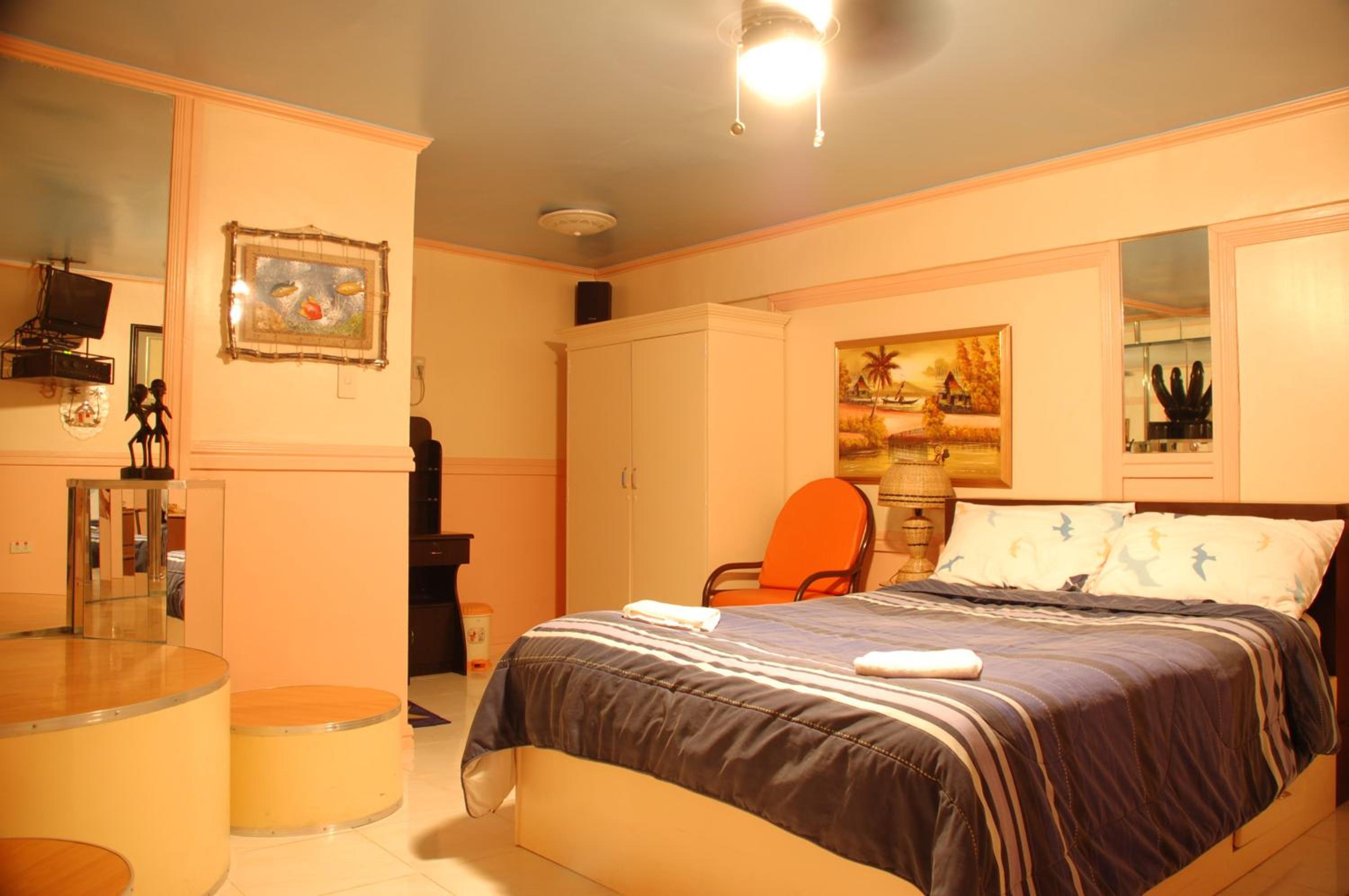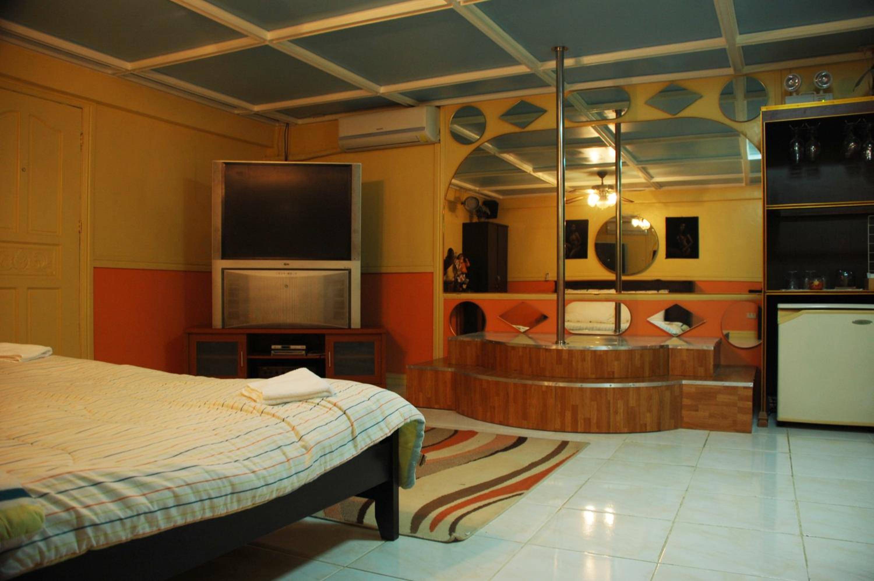 The rooms are modestly furnished and equipped with a flat-screen TV, DVD player, and minibar. Some rooms feature pool views or a private dance floor with a pole-dancing podium. Refresh in the en suite bathrooms with hot-water showers.