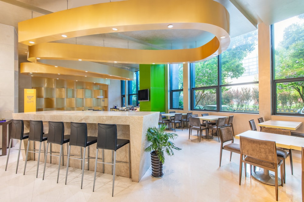 My experience at this location was mediocre at best. The staff spoke no English so had to use app for help. Didn't have a bar and the lounge was basically the lobby/breakfast area. Computers are only in Chinese so not user friendly for foreigners. Breakfast is only Chinese breakfast which was delicious. The room was very comfortable but small. Close to stores and movie theater which is located across the street. Noise from traffic and music in the morning is quite loud. Over all it was good. Stayed a week at this location.