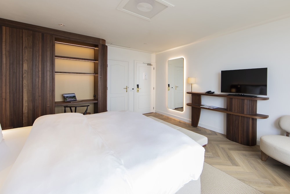 Lovely room overlooking sea. Wide windows opened so you could hear the sea below. Room was new, clean and modern, Bathroom looked new and the facilities and location were super.
