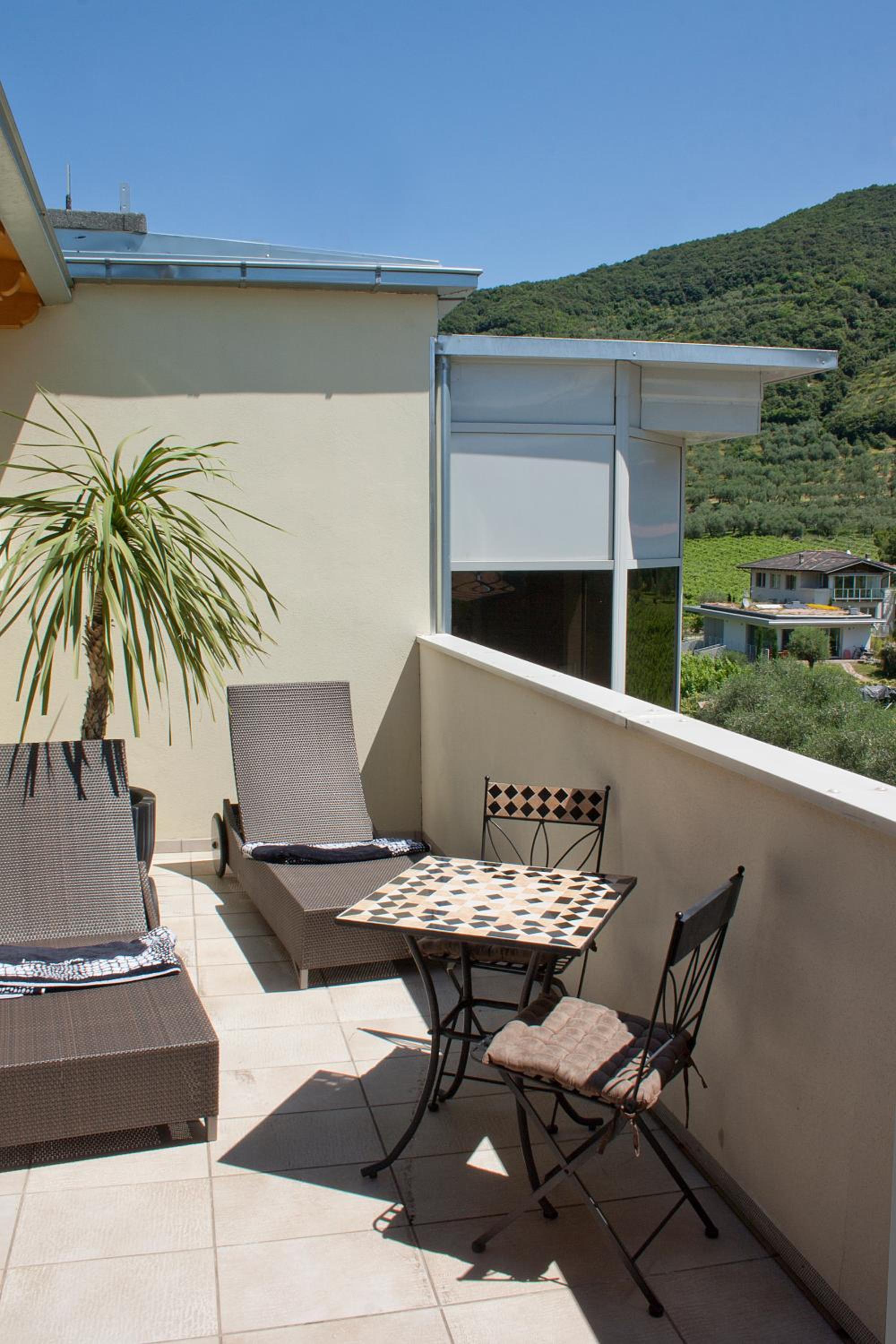Die Bushaltestelle ist quasi direkt vor der Tür, von dort aus kommt man bequem ins Zentrum von Riva oder nach Arco. Um ins Zentrum zu kommen, kann man auch im Hotel ein Fahrrad mieten.