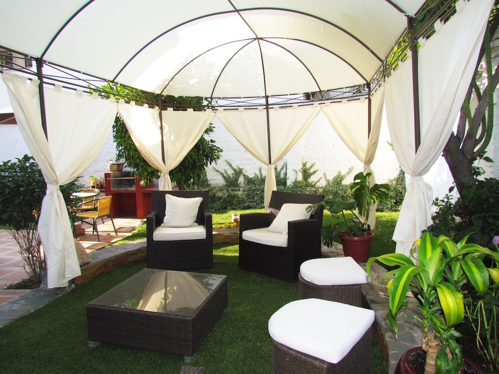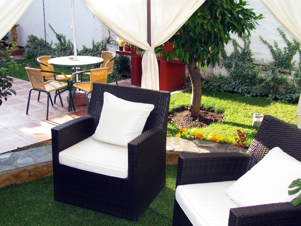 Pros: Great little ethnic-style decor place on a budget! Lovely front patio cafe with truly delicious, generous portions - had an excellent dinner!! ... ceviche (enough for a meal) as a starter and a sautéed Chilean sea bass with calamari on top and a salad of avocado, cucumber, tomato, fennel and delicate bib lettuce! Also a backyard patio to relax shaded by trees and an elegant white fabric strewn in a tent like way.