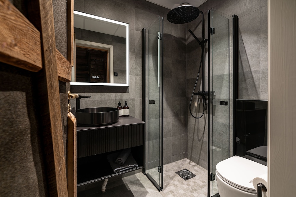 Ett helt fantastiskt boende som passar bra in i miljön ! Rummen har en interiör med känsla att bo i en hydda/jaktstuga men med samtliga bekvämligheter. Väldigt bra frukostbuffé !