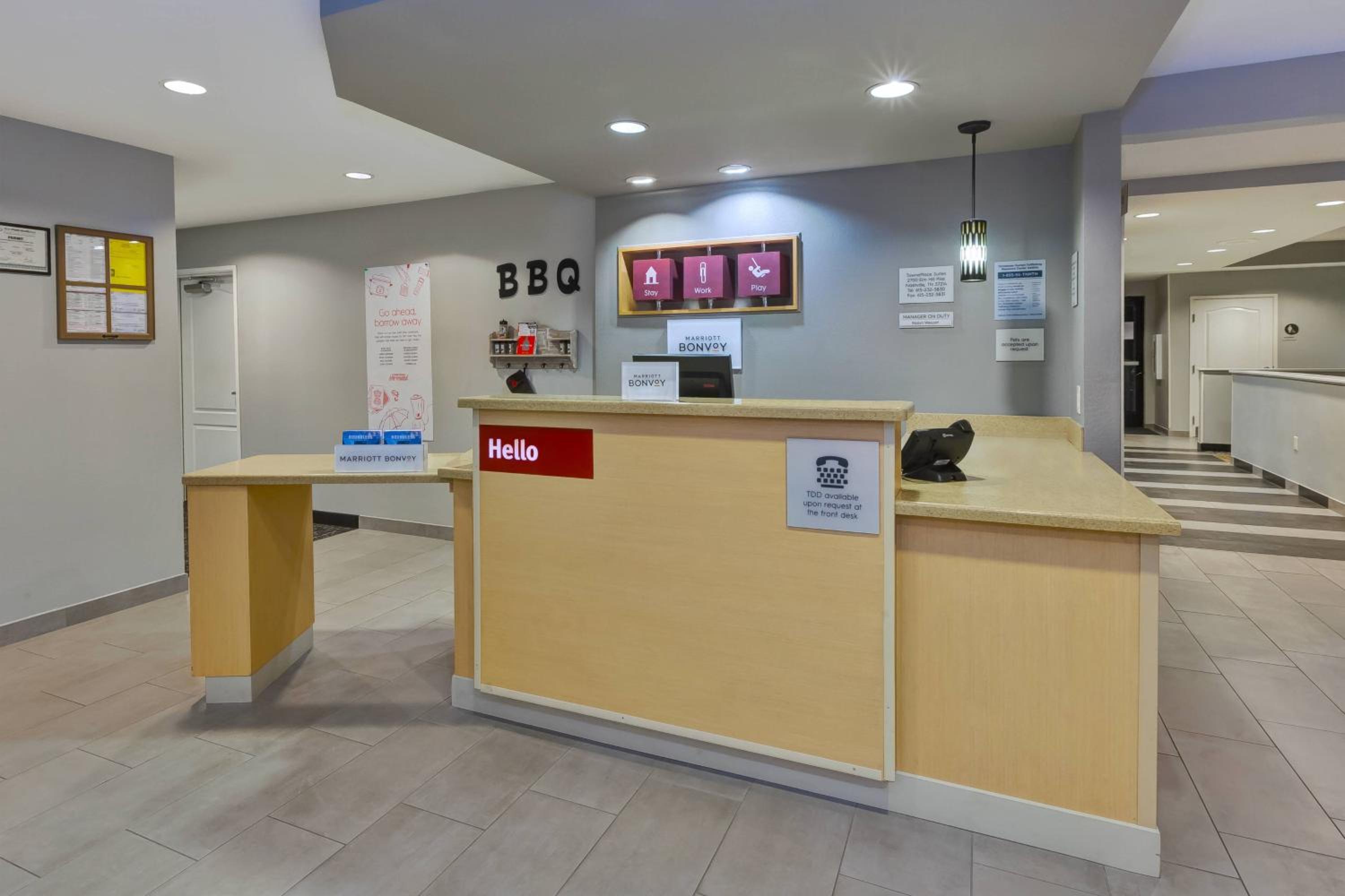 The hotel is in a quiet and convenient location. They provide breakfast and is really good and have different options. The room was clean, as well all the areas of the hotel. The front desk staff was respectful, friendly and helpful. A special thank you to Ms. Peggy, a caring sweet lady who always have a friendly smile. We had a great time! The TownPlace in Nashville Airport is a nice place to stay.