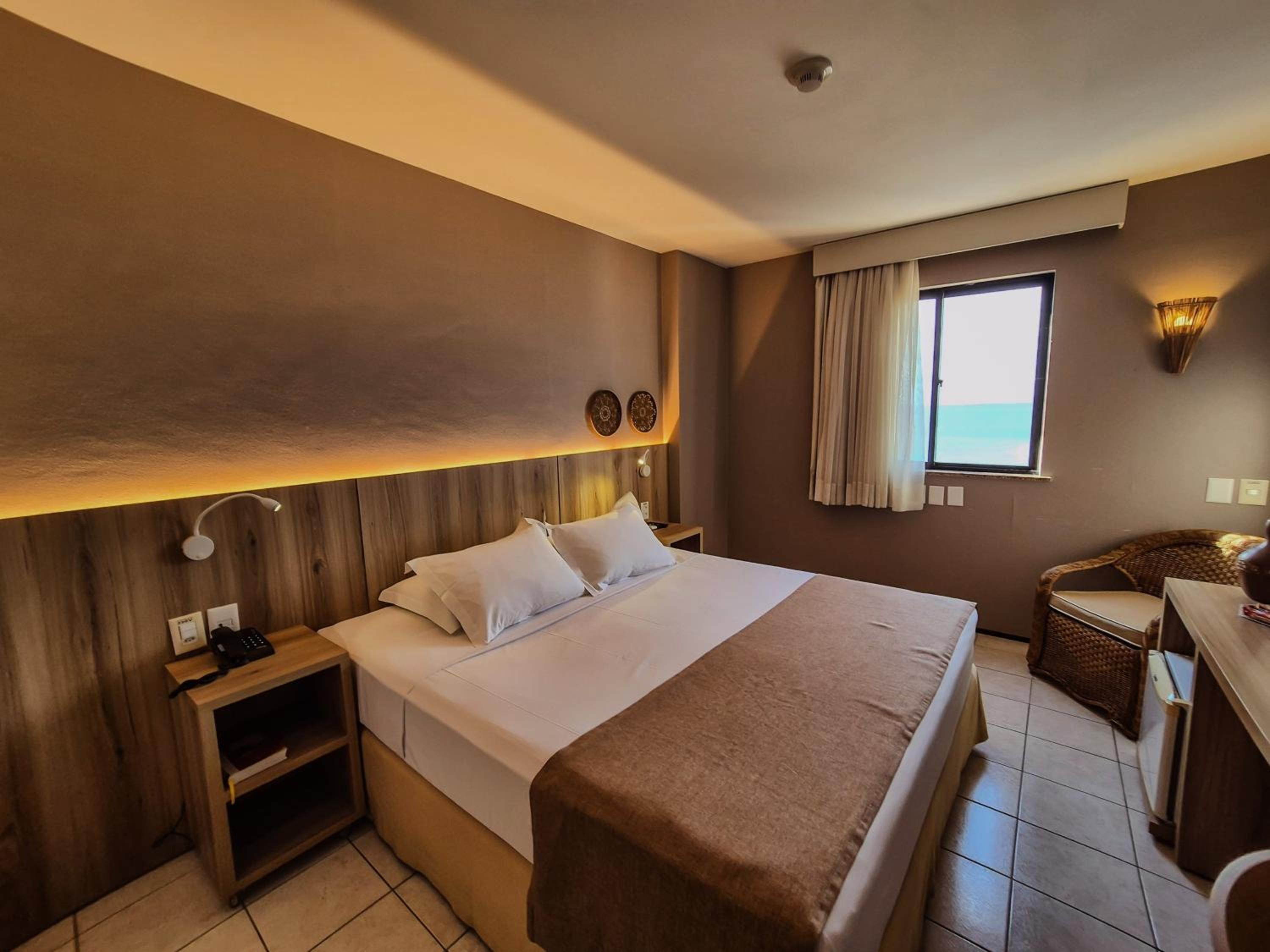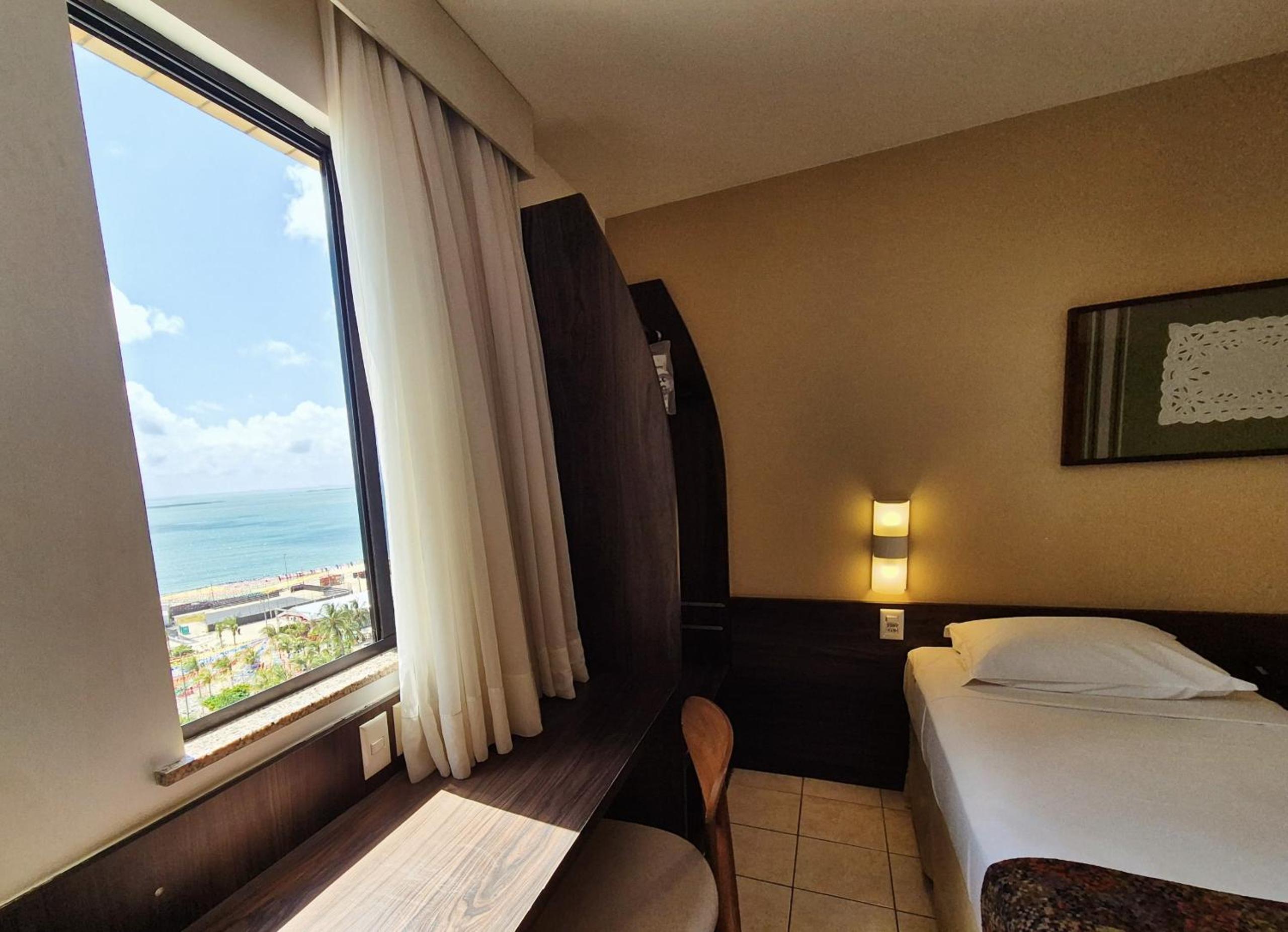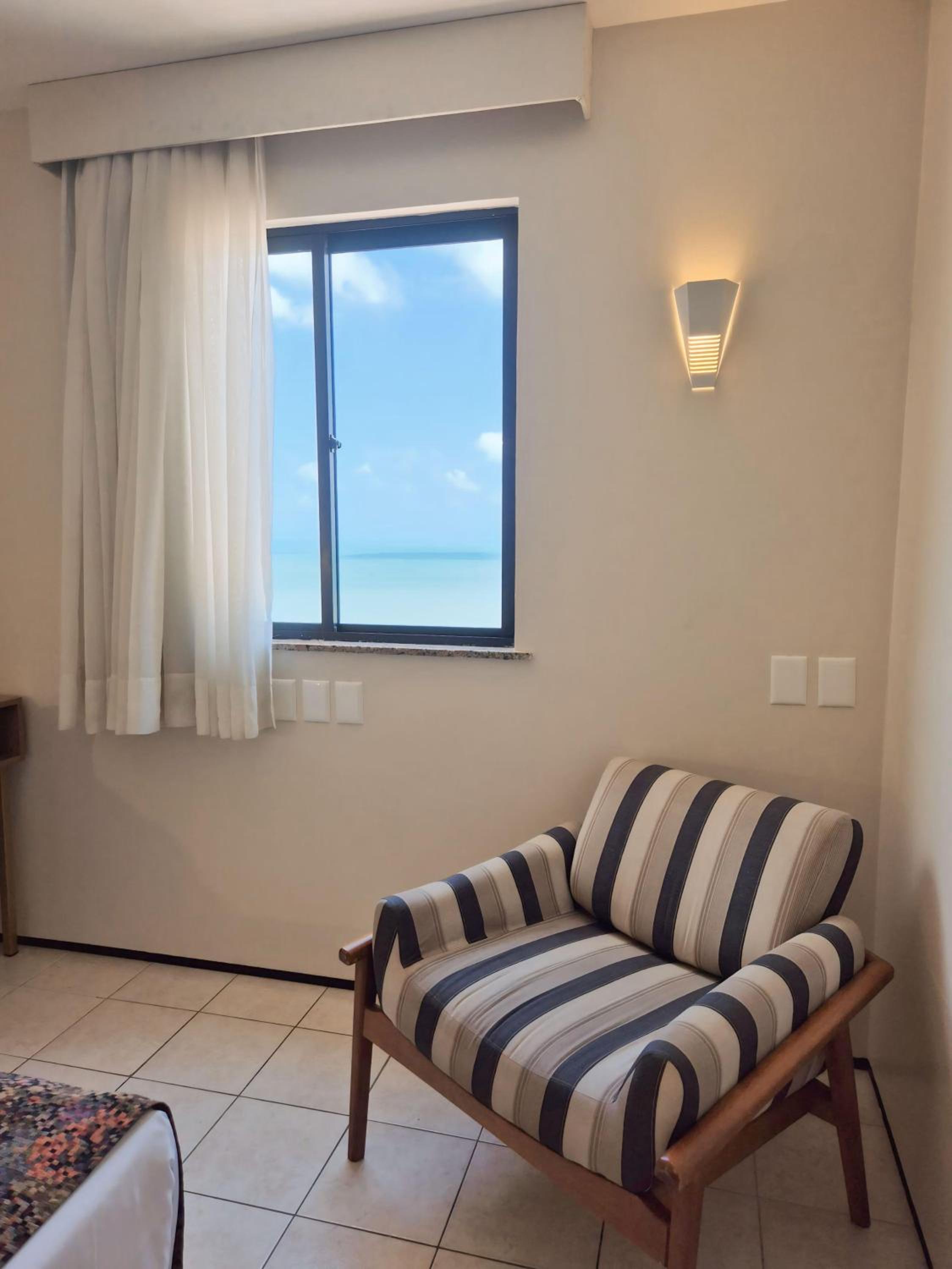 The rooms at Hotel Sonata de Iracema feature clean tiled floors, abundant natural light, and amenities such as air conditioning and cable TV. Each room offers a charming view of the sea, enhancing the overall stay experience.
