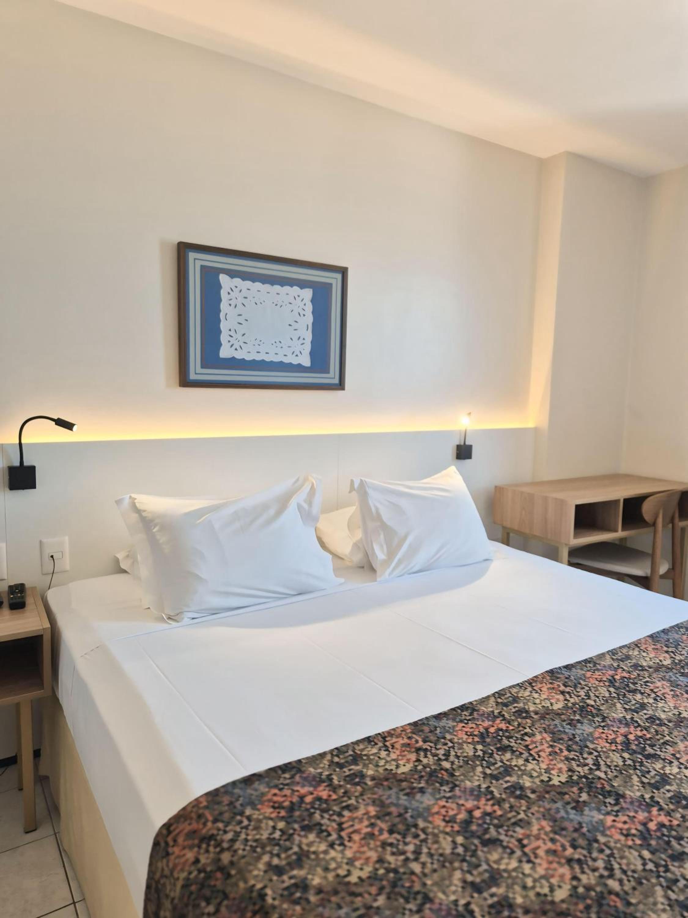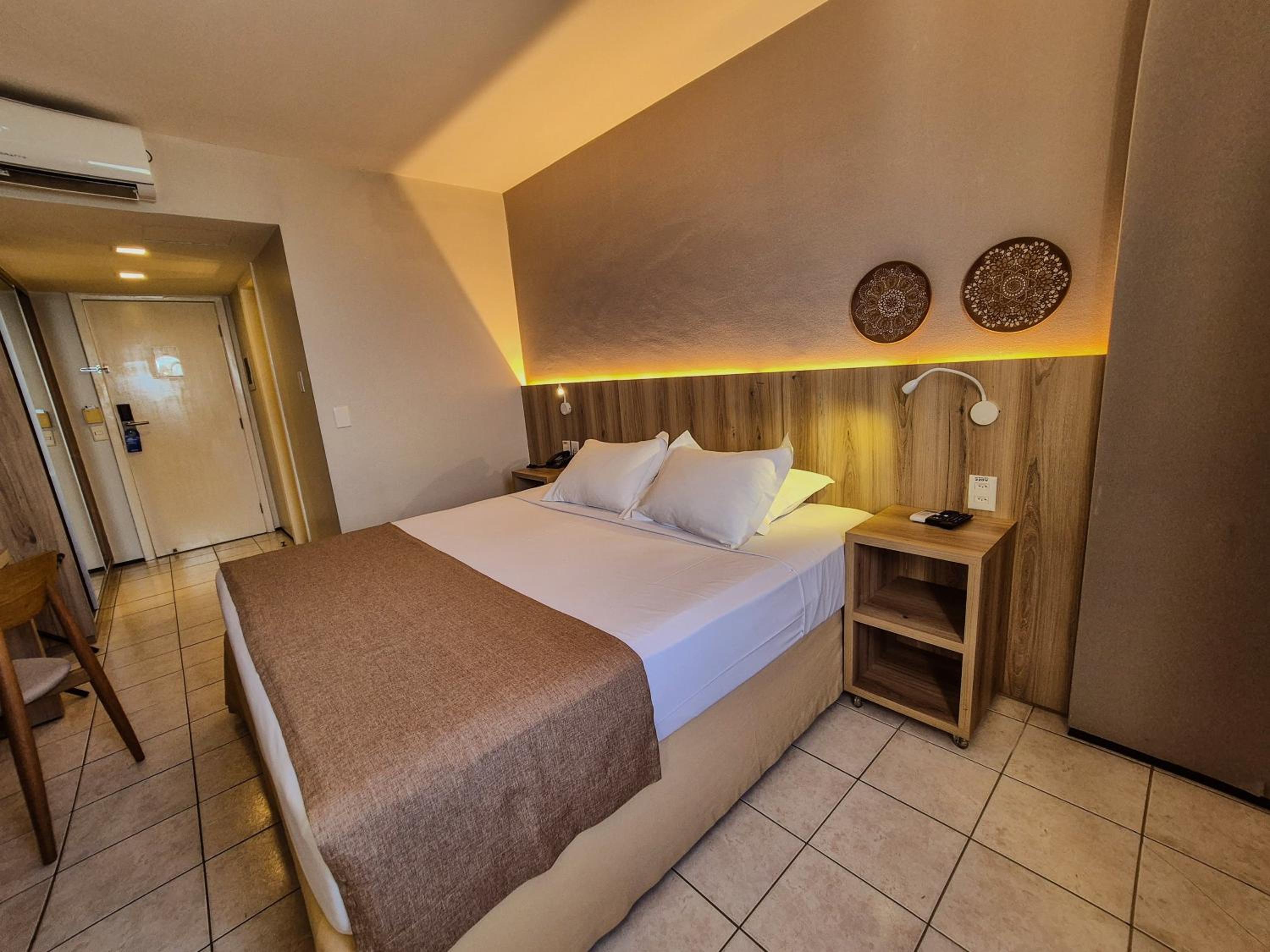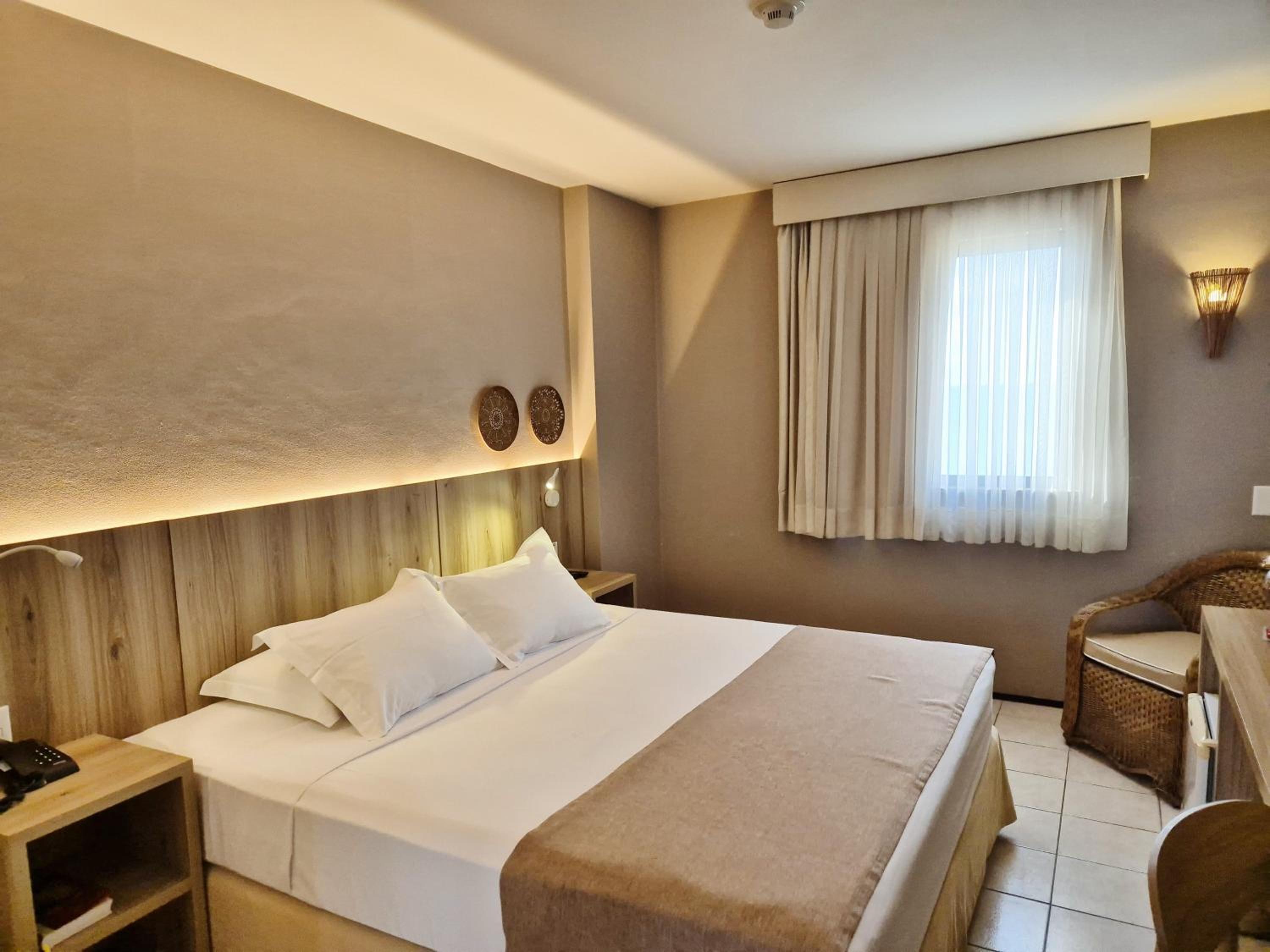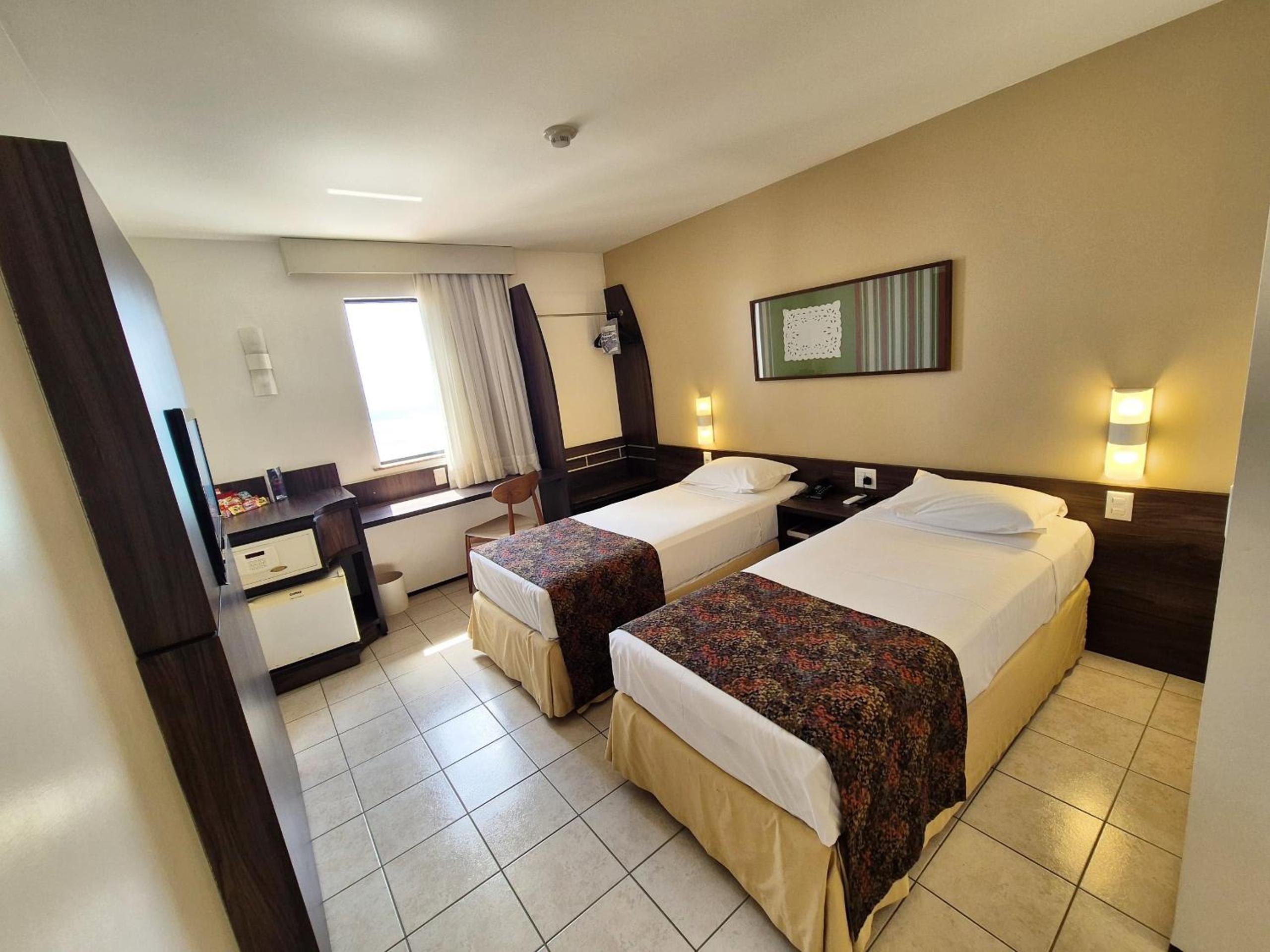 The rooms at Hotel Sonata de Iracema feature clean tiled floors, abundant natural light, and amenities such as air conditioning and cable TV. Each room offers a charming view of the sea, enhancing the overall stay experience.