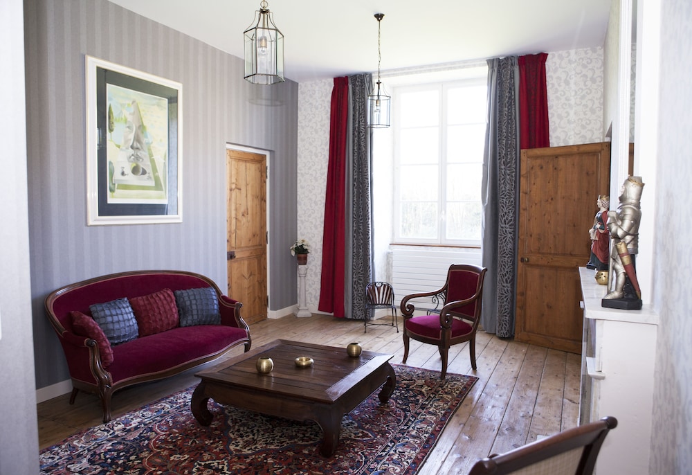 Located deep in the French countryside, and was not easy to find. Perhaps clearer directions could be given when booking. The setting is marvellous, and utterly peaceful. The building is a fascinating mixture of old and new, beautifully furnished with much antique furniture, yet having such things as a lift. Our room was vast and well furnished, and again equipped with an excellent modern bath-room. The basic price was excellent, but breakfast and the evening meal was too expensive for what was served.The food in the restaurant was original. The quality of service was first-class. Unfortunately, we were not able to explore the gardens, because it rained all the time we were there.