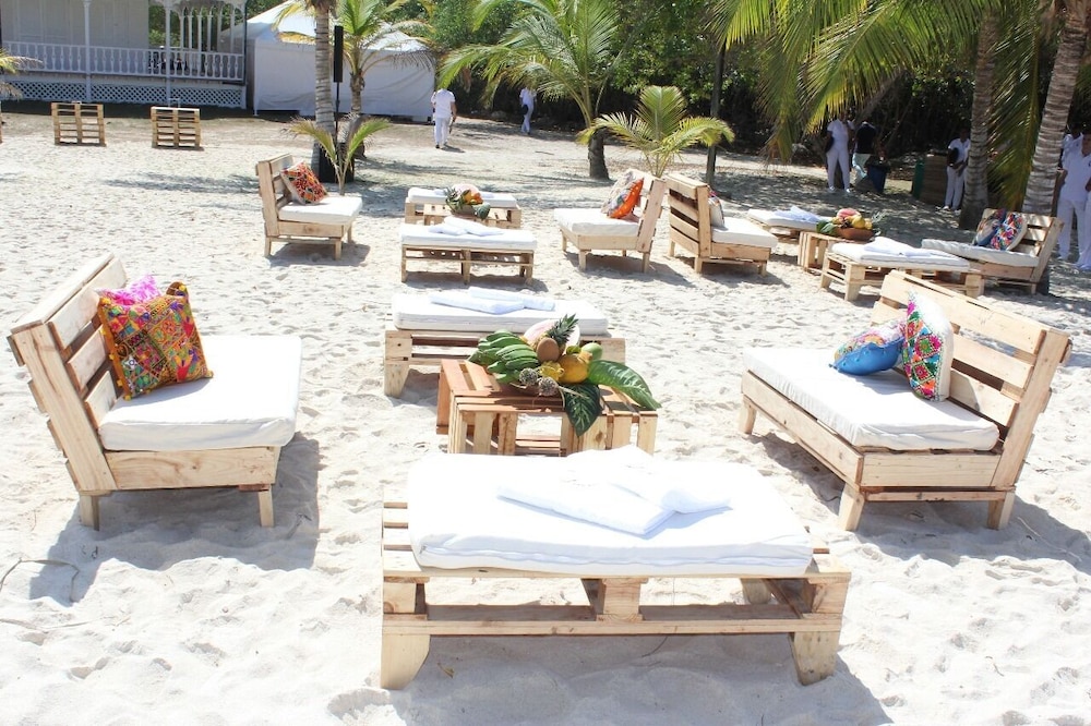 Wir wollten während unseres 4wöchigen Kolumbien Urlaubs einige Tage an der Karibik entspannen. (Familie mit 2 Jungs, 14+17J). Von den Expedia Bildern war ich sofort begeistert. Die Anreise mit dem Boot hat prima funktioniert. Das Hotel hat veranlasst, dass wir mit dem Taxi an unserem vorherigen Hotel in Cartagena abgeholt wurden und auch die Abreise über Land (da das Boot erst nachmittags fährt ist das eine gute Alternative) hat reibungslos geklappt. Bei unserer Ankunft waren wir total begeistert - ein traumhafter Strand und ein sehr geschmackvoll eingerichtetes Hotel mit vielen gemütlichen Sitzgelegenheiten. Es sah tatsächlich fast alles so aus, wie auf den Bildern. 3 Tage hatten wir das Hotel (es hat 5 Zimmer) ganz für uns alleine und ab 16 Uhr, wenn die Tagestouristen weg sind, waren wir sogar alleine auf der Insel, da es dort keine weiteren Hotels gibt. Wir fanden das traumhaft (auch die Jungs) aber man muss es natürlich mögen. Bücher/Spiele sollte man auf jeden Fall dabeihaben.