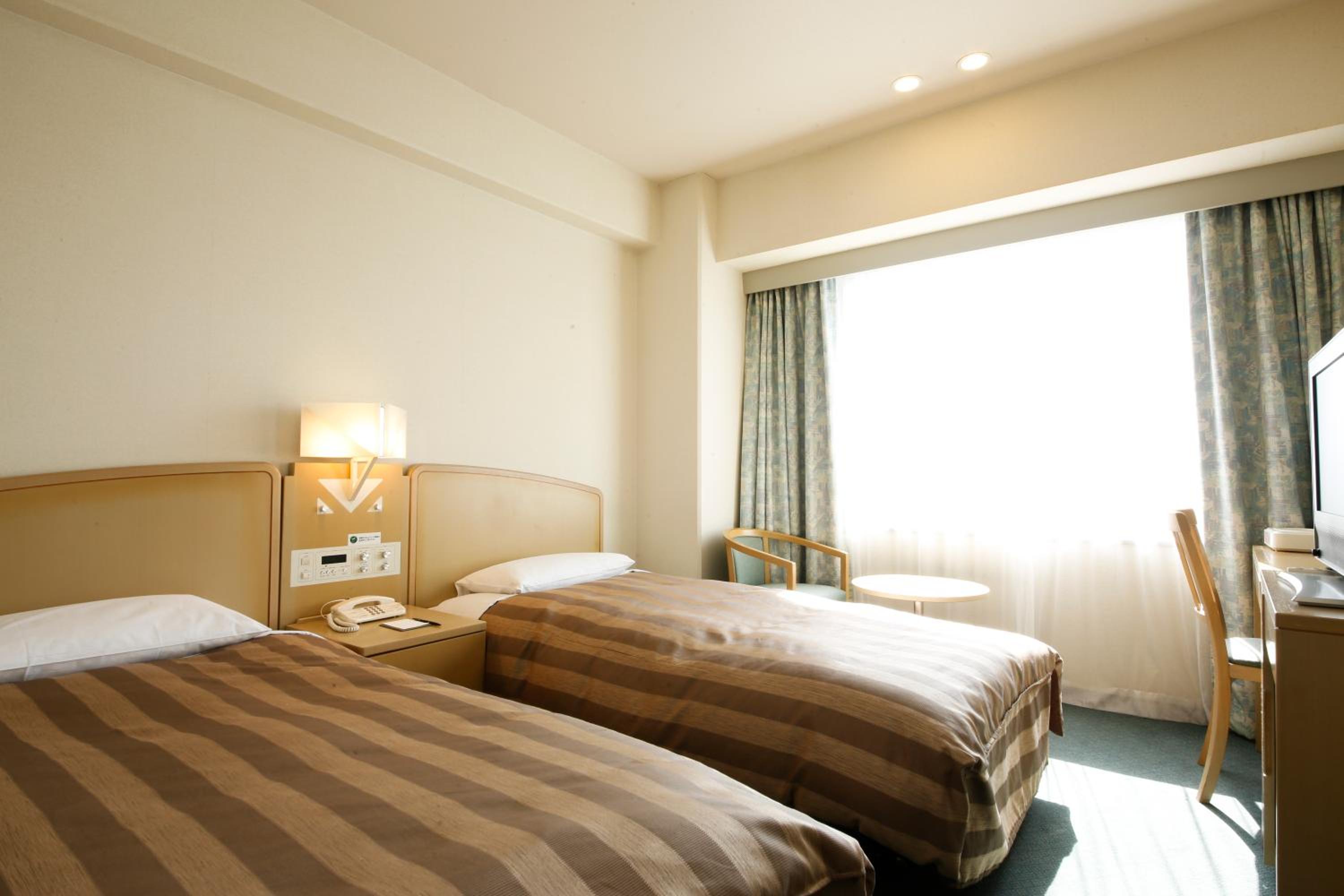 Experience comfort and style at Tokushima Grandvrio Hotel with air-conditioned rooms featuring elegant light wood furnishings, free wired internet, and flat-screen TVs. Each room is equipped with a fridge, electric kettle, and a selection of green tea for your enjoyment. The private bathrooms boast a relaxing bathtub, plush slippers, and complimentary amenities.