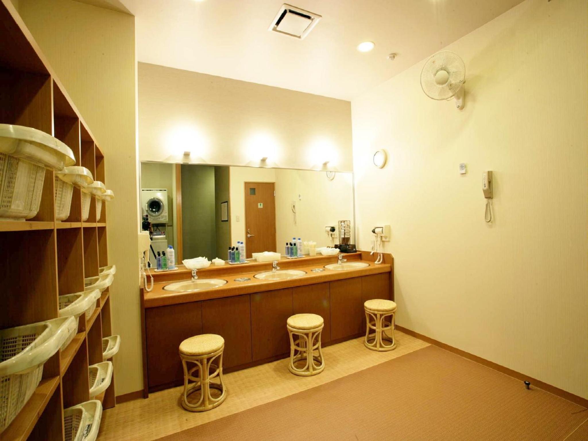 Guests can unwind in the expansive public baths or rent laptops from the front desk, providing convenience and relaxation during their stay.