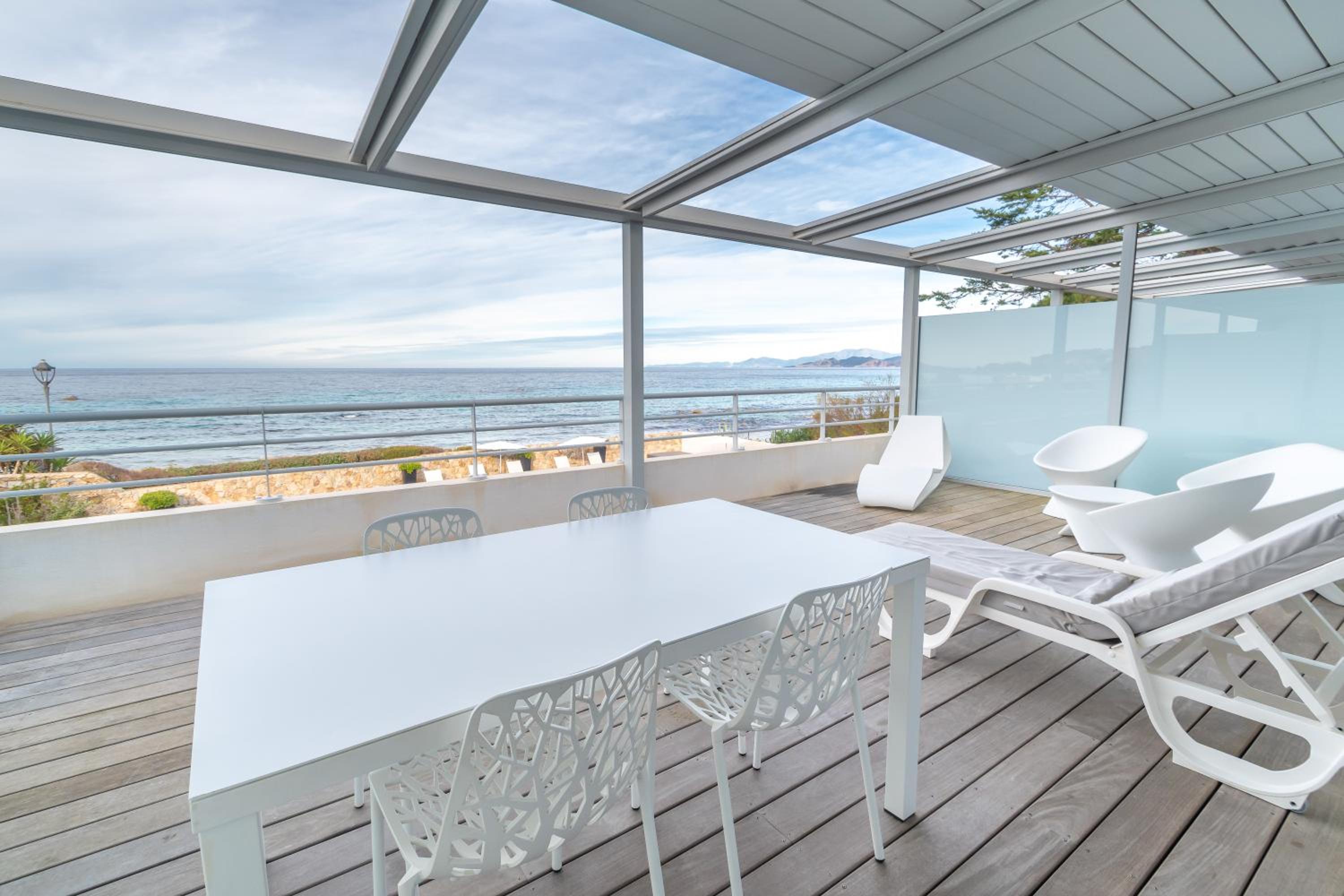 Tolle Terrasse mit Meerblick und direkte Lage am Strand.