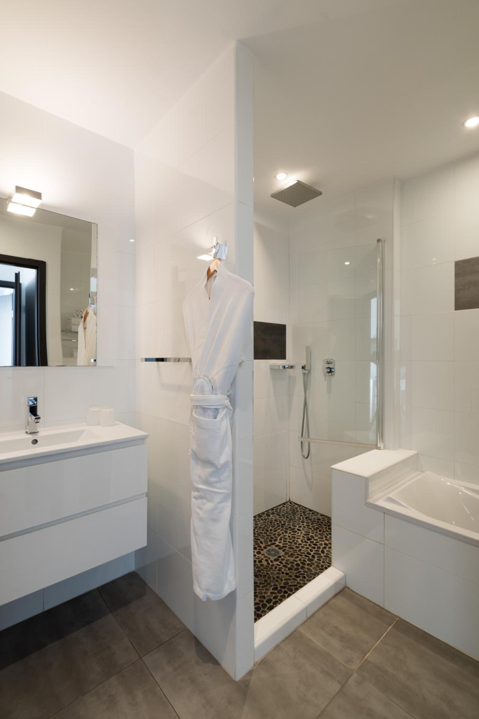Modern Apartments with Premium Amenities: Indulge in stylish air-conditioned apartments with free Wi-Fi, American kitchen, and en suite bathrooms featuring both bathtub and shower.