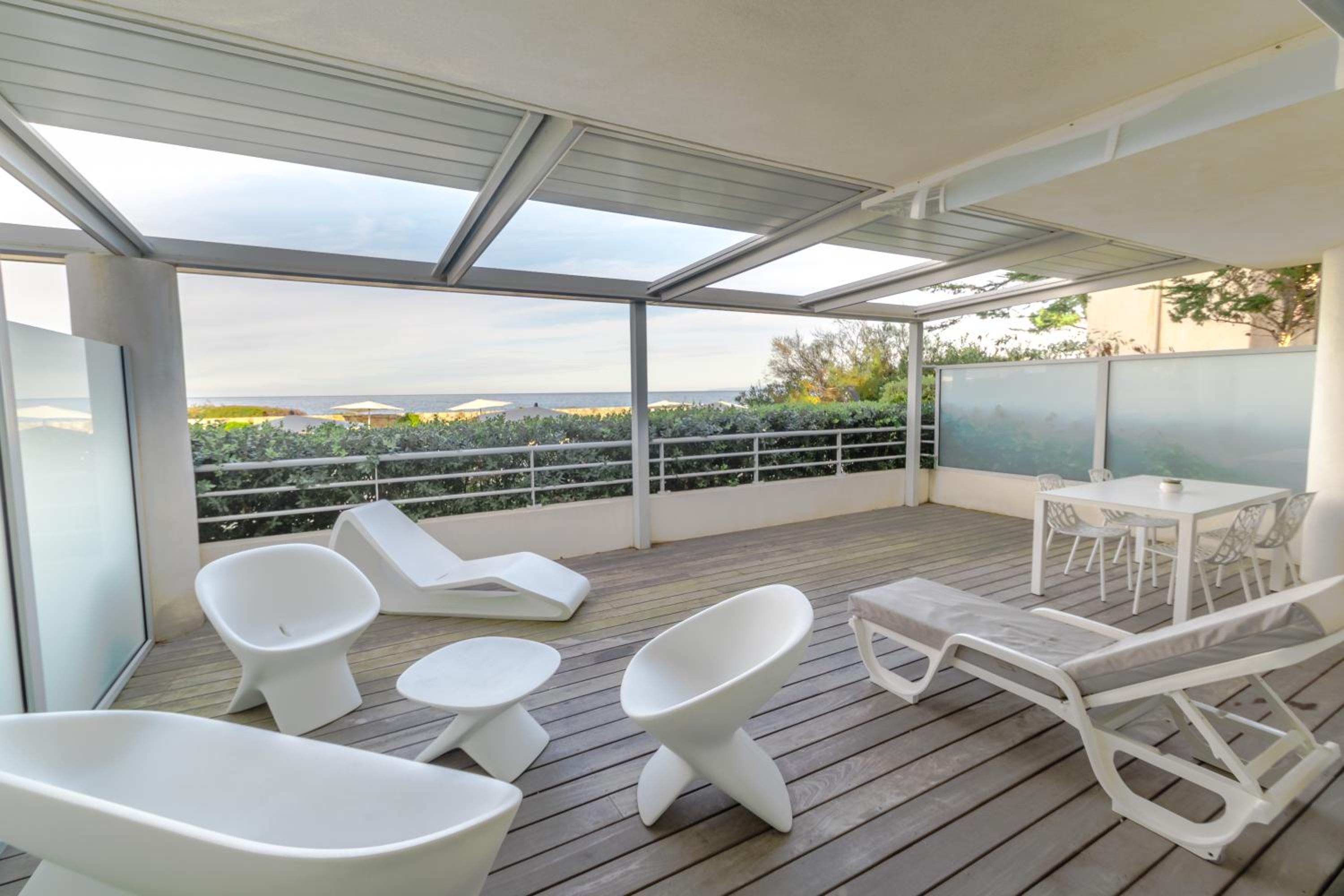 Fantastic place to stay, right on the beach. Facilities and equipment were great. We had a large ground floor apartment with 2 large bedrooms and bathrooms. Flats were very well equipped. We had everything from coffee machine, juicer, blender to hair diffuser. Nice pool and jacuzzi. Good yo have free secure parking. Sylvie is very helpful and speaks good English. Restaurants nearby are good too. Lots of choice. Great having cleaners each day