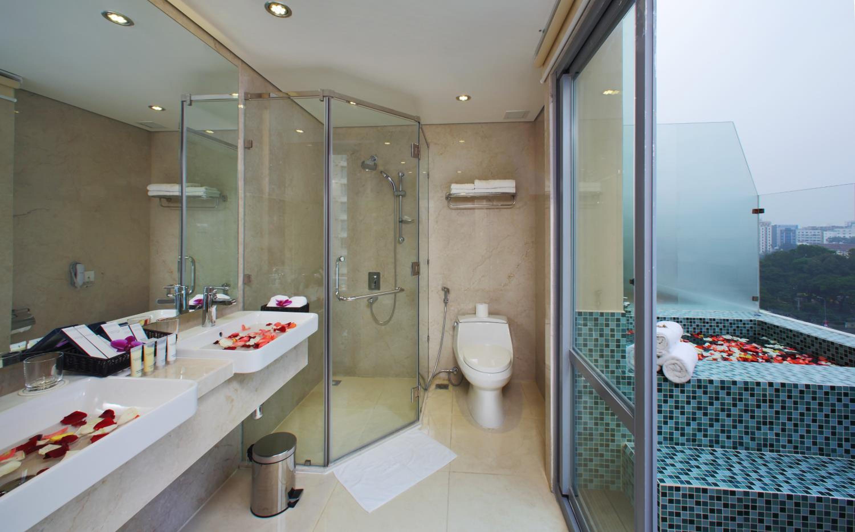 Modern Comforts: The hotel's air-conditioned rooms provide stunning city views and are equipped with all essential amenities, from a flat-screen TV to an en suite bathroom with complimentary toiletries.