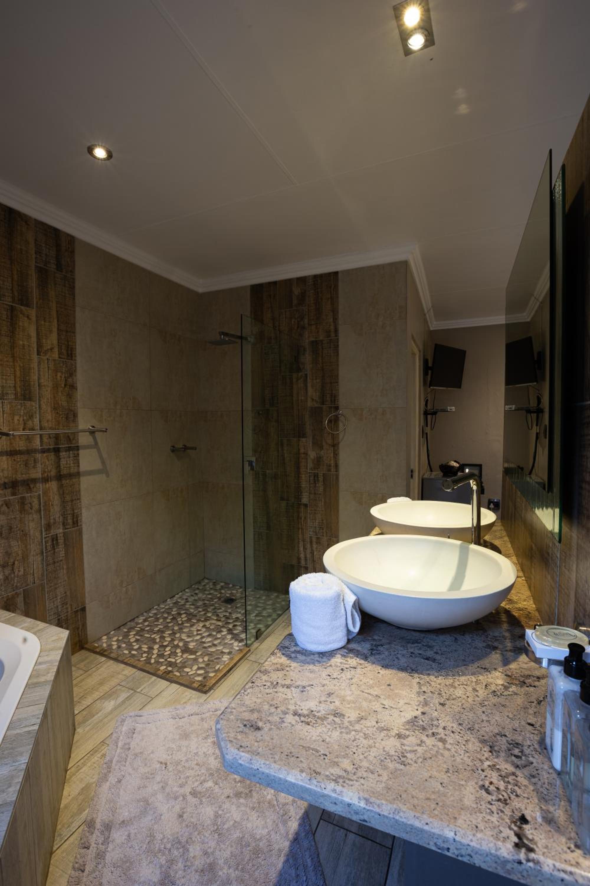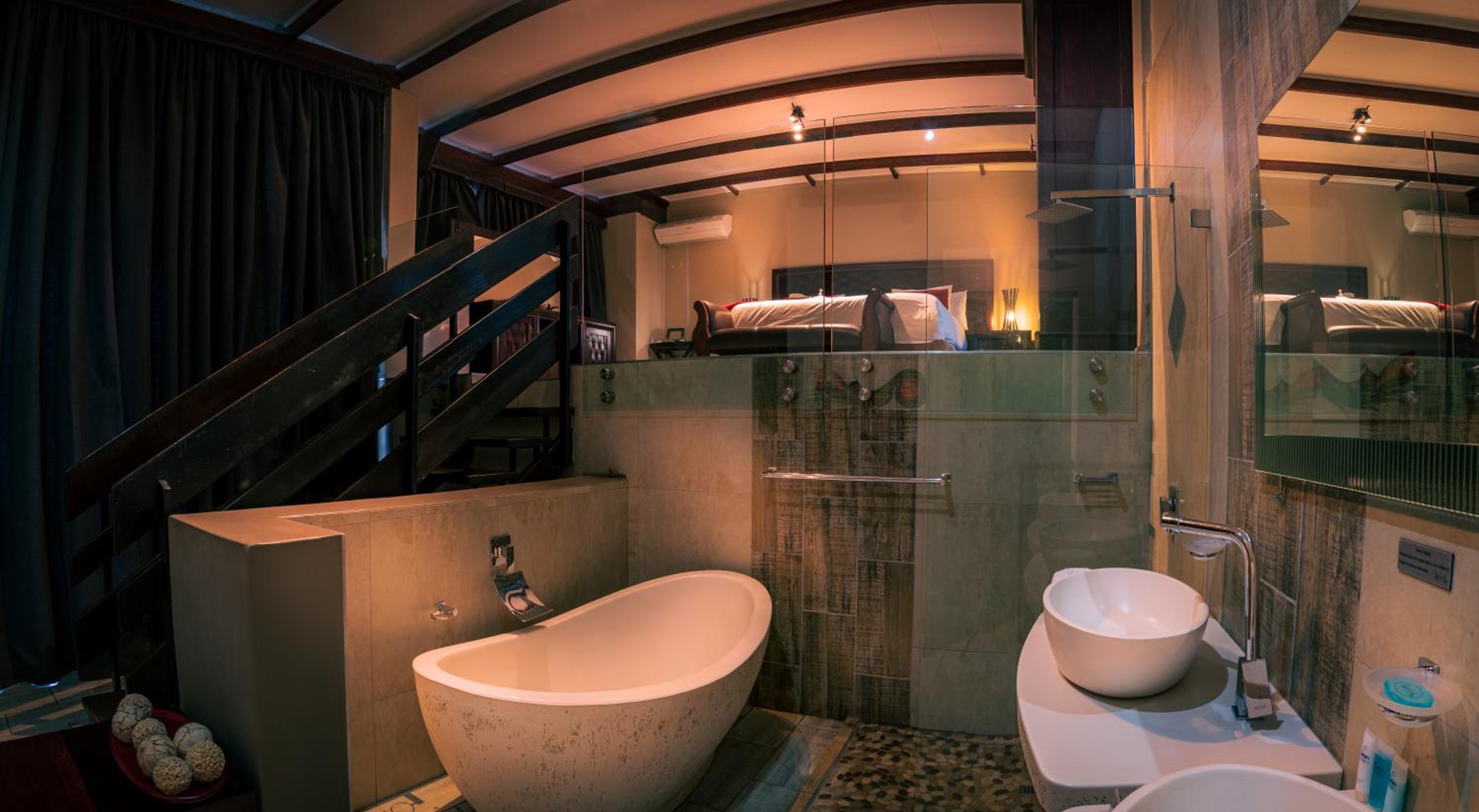 Waterfalls Boutique Hotel offers chic, contemporary rooms with modern amenities and stylish decor, providing a comfortable and relaxing stay for guests. The dark wood furnishings and plush beds create a sophisticated atmosphere, while the option of a modern kitchenette adds convenience to your stay.