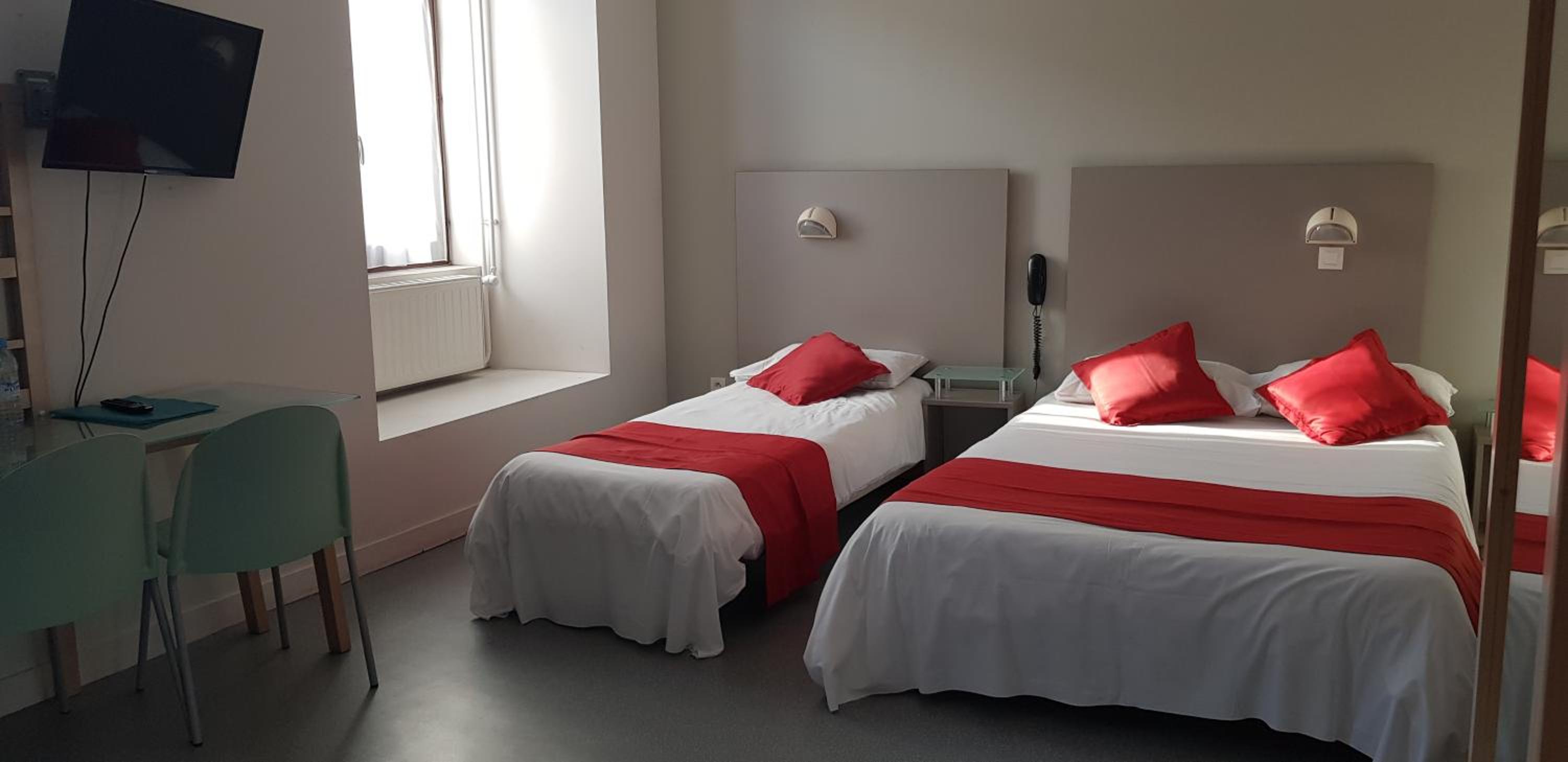 Chambre confortable et propre, elle était petite mais comme j'étais seul, je pense que c'était normal. Le repas à 29€ était vraiment bon et copieux. Aucun souci de stationnement pour les autos.