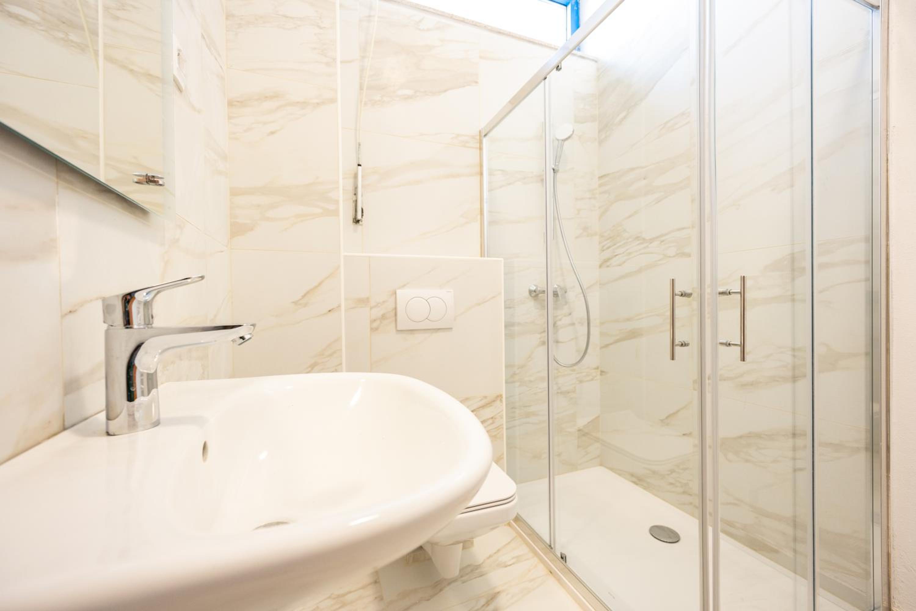 Čista, uredna i topla soba. Tiho okruženje,ljubazna gospođica na recepciji, bogat doručak.Sve pohvale i dolazimo opet.
