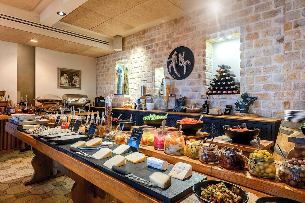 Very picturesque hotel - great view of the sea when eating breakfast. Nice breakfast. Has a few hotel parking spaces and more free parking on the street right by it. No elevator that I know of...and a flight of steps from the parking. Zikhron Ya'aqov is a lovely little town to visit.
