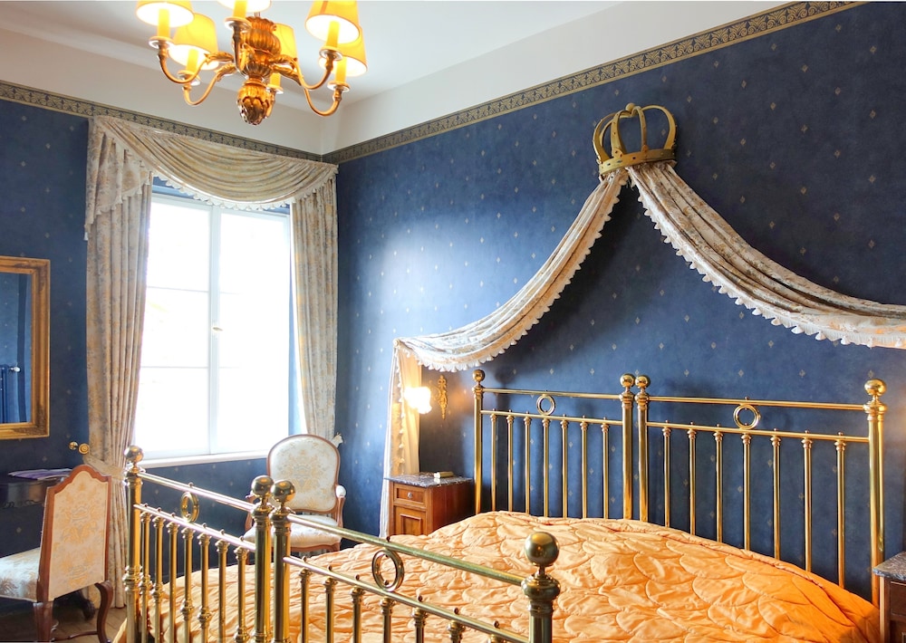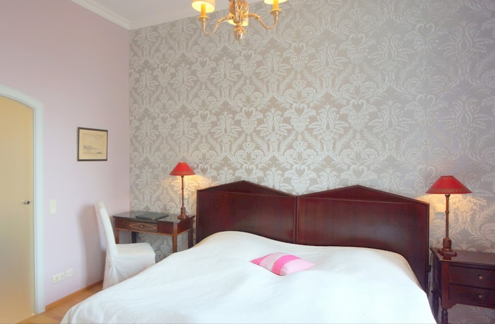 Kaiserlich ist es eher nicht, aber ein nostalgischer Charme ist vorhanden. Möbel , Spiegel und Lampen stilvoll. Badezimmer in rosa schreit nach Sanierung, ebenso der Fussboden (Teppich).