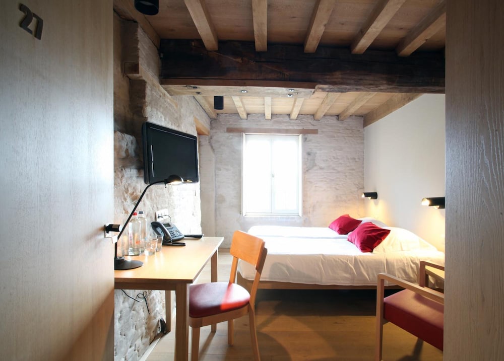 hotel situe dans un endroit bucolique batiment bien restauré. Manque un peu de personel et un mini bar necessaire dans la chambre serait mieux que deux bouteille d'eau soumis à la chaleur. Prevoir un nettoage des toiles d'araignées.