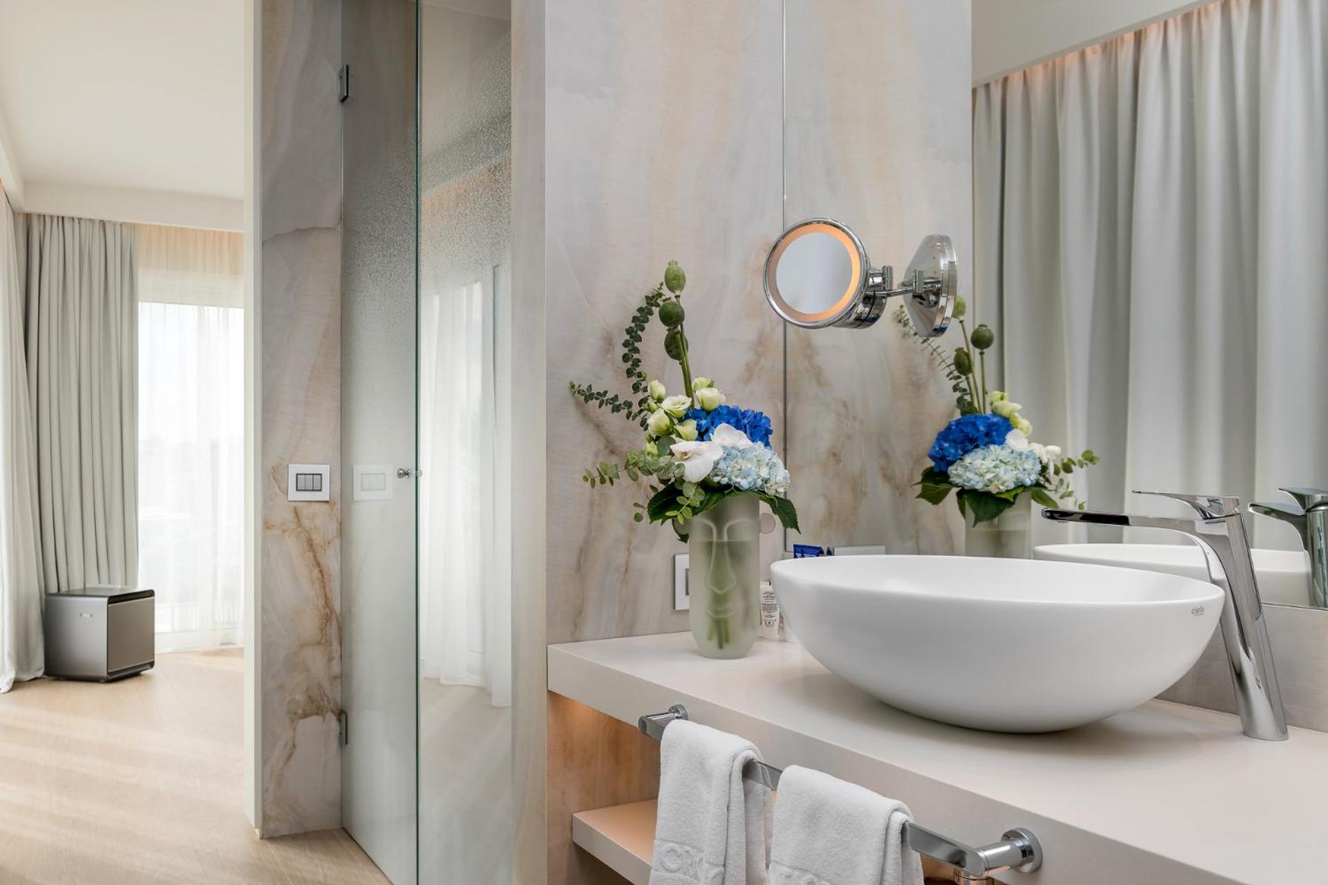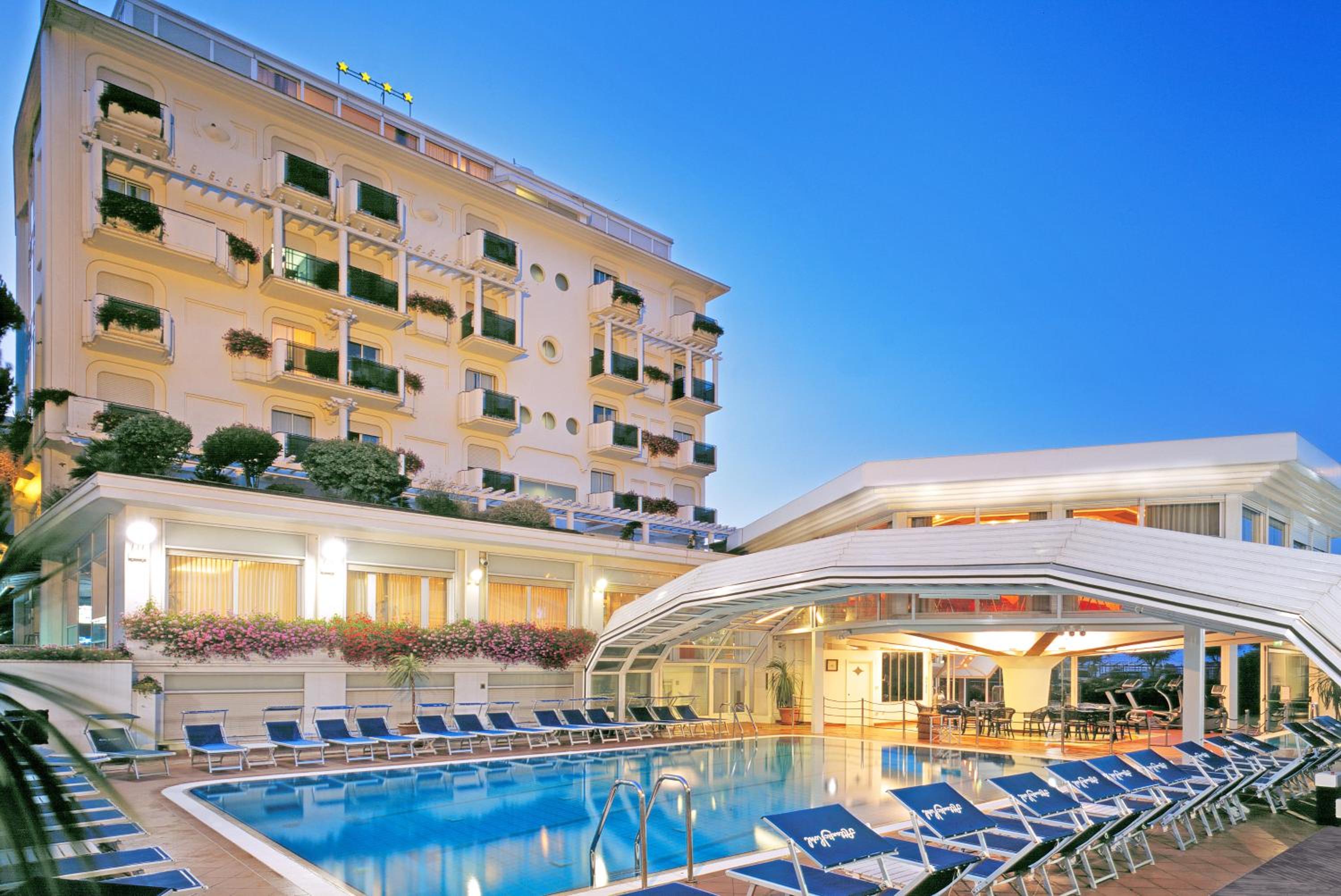 Experience the epitome of luxury at the 4-star superior Atlantic Hotel in Riccione. Indulge in a stay at this Mediterranean-style property, offering a free indoor sea-water pool and a wellness centre for ultimate relaxation. Pamper yourself with a sauna, Turkish bath, and hot tubs at the on-site spa. Enjoy a sumptuous buffet breakfast and savor regional delicacies at the restaurant overlooking the sea. With free WiFi and private balconies in most rooms, the Atlantic Hotel ensures a comfortable stay with partial sea views. Just steps away from the beach and close to popular shopping destinations, this hotel is the perfect choice for your next getaway.