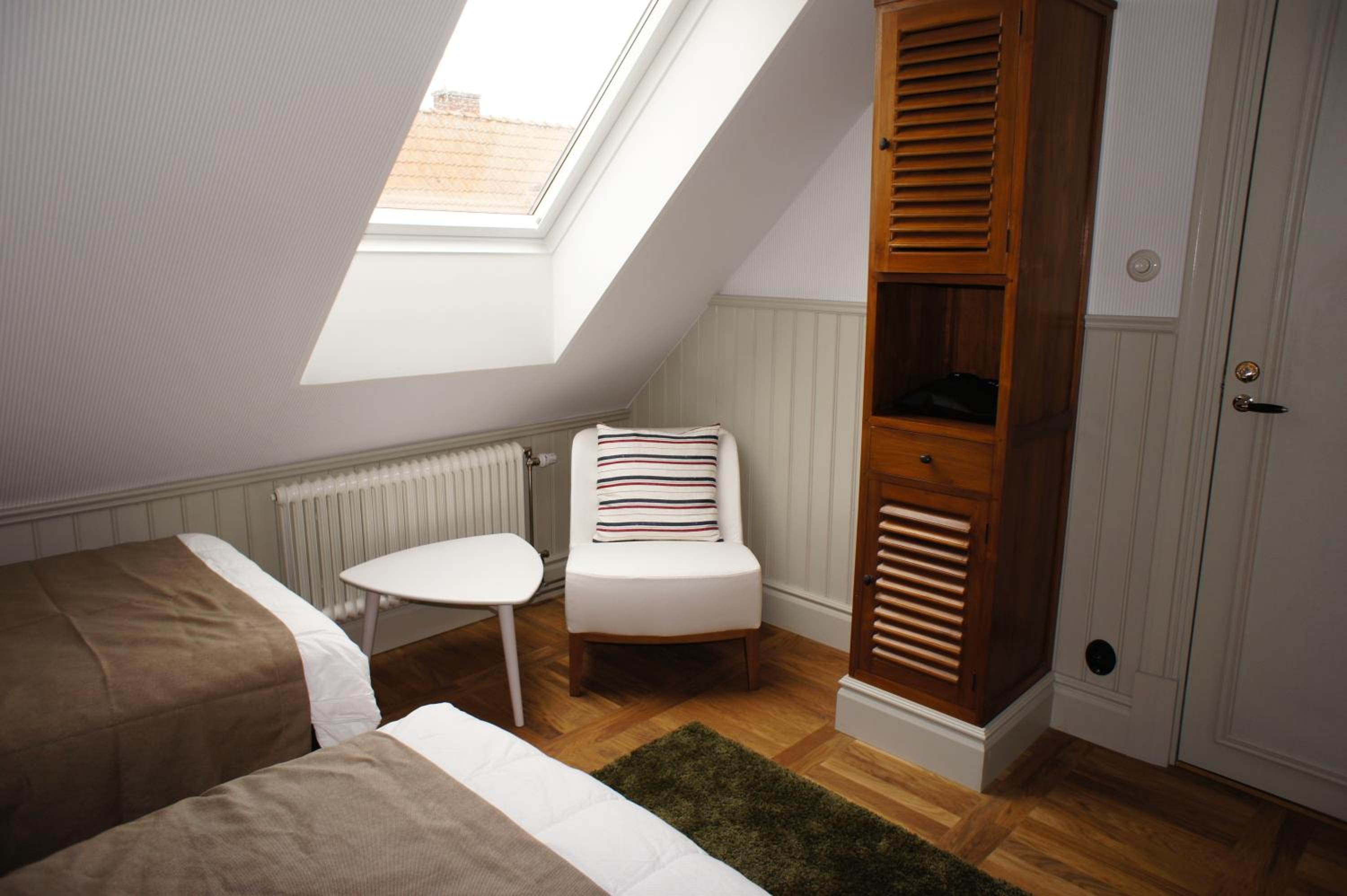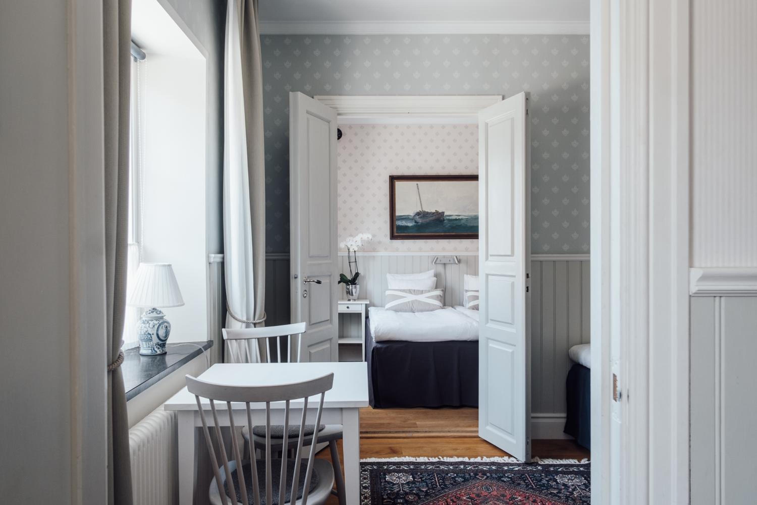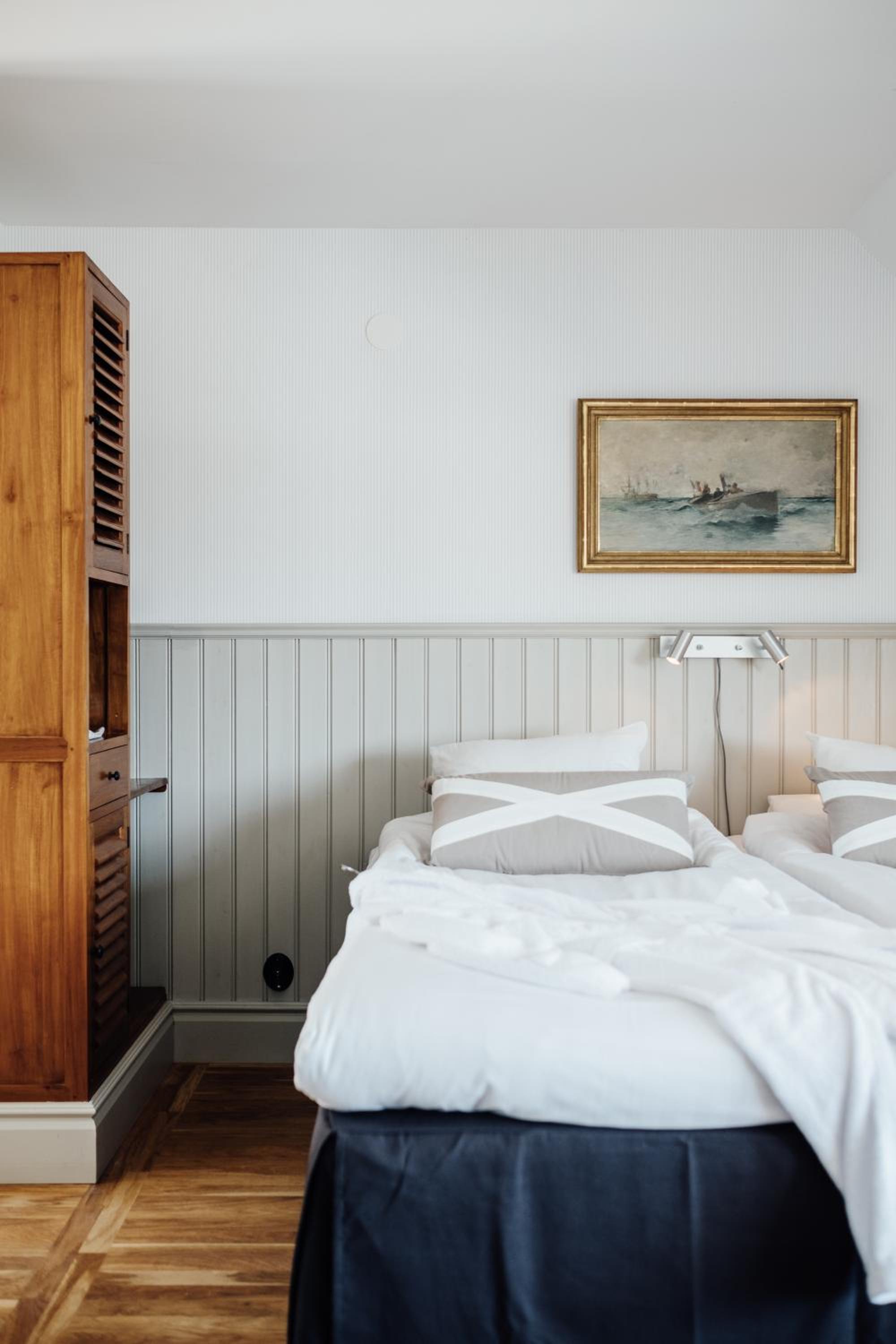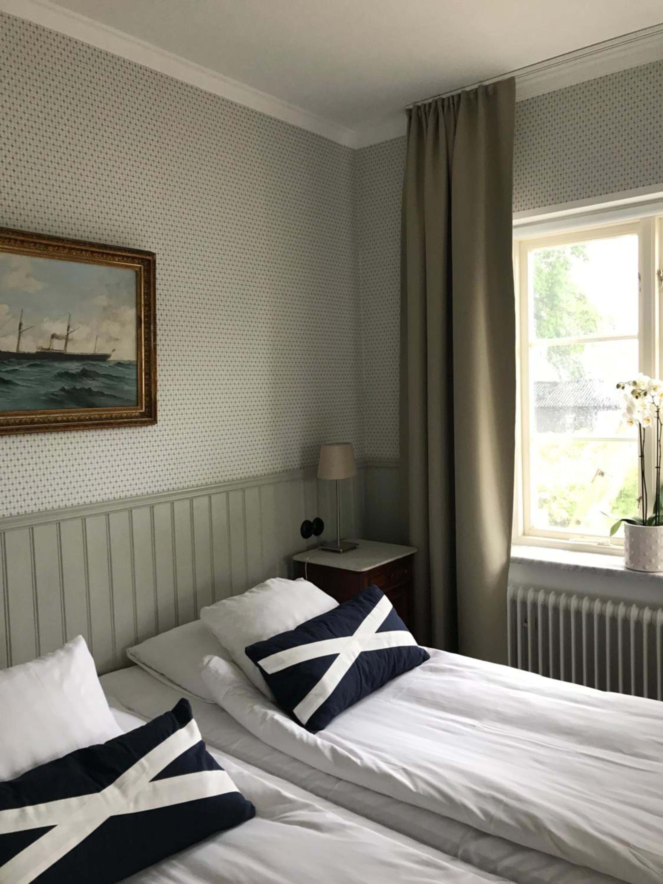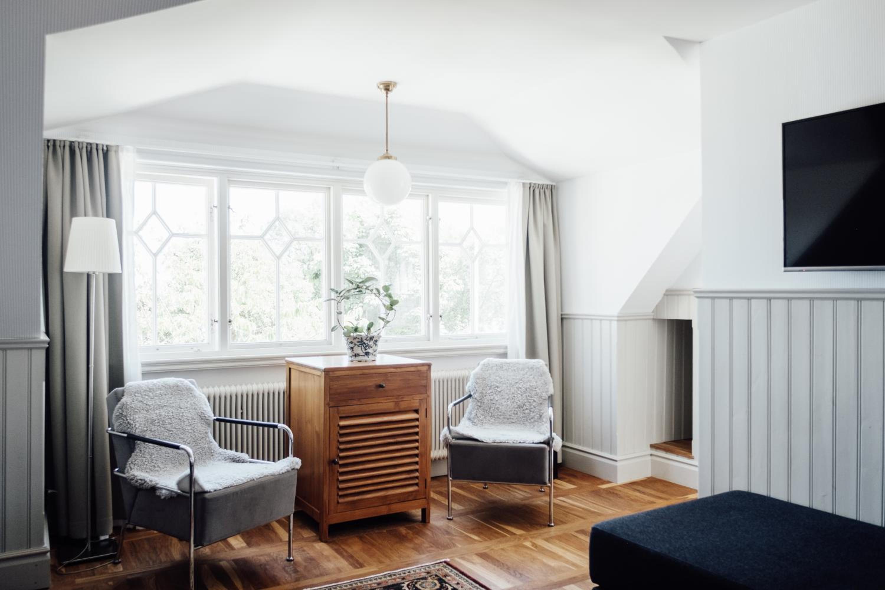 Individually Decorated Rooms: Experience modern décor in each uniquely styled room, only steps away from Kivik Beach. Enjoy amenities like a private bathroom, wooden floors, a seating area, TV, and WiFi.