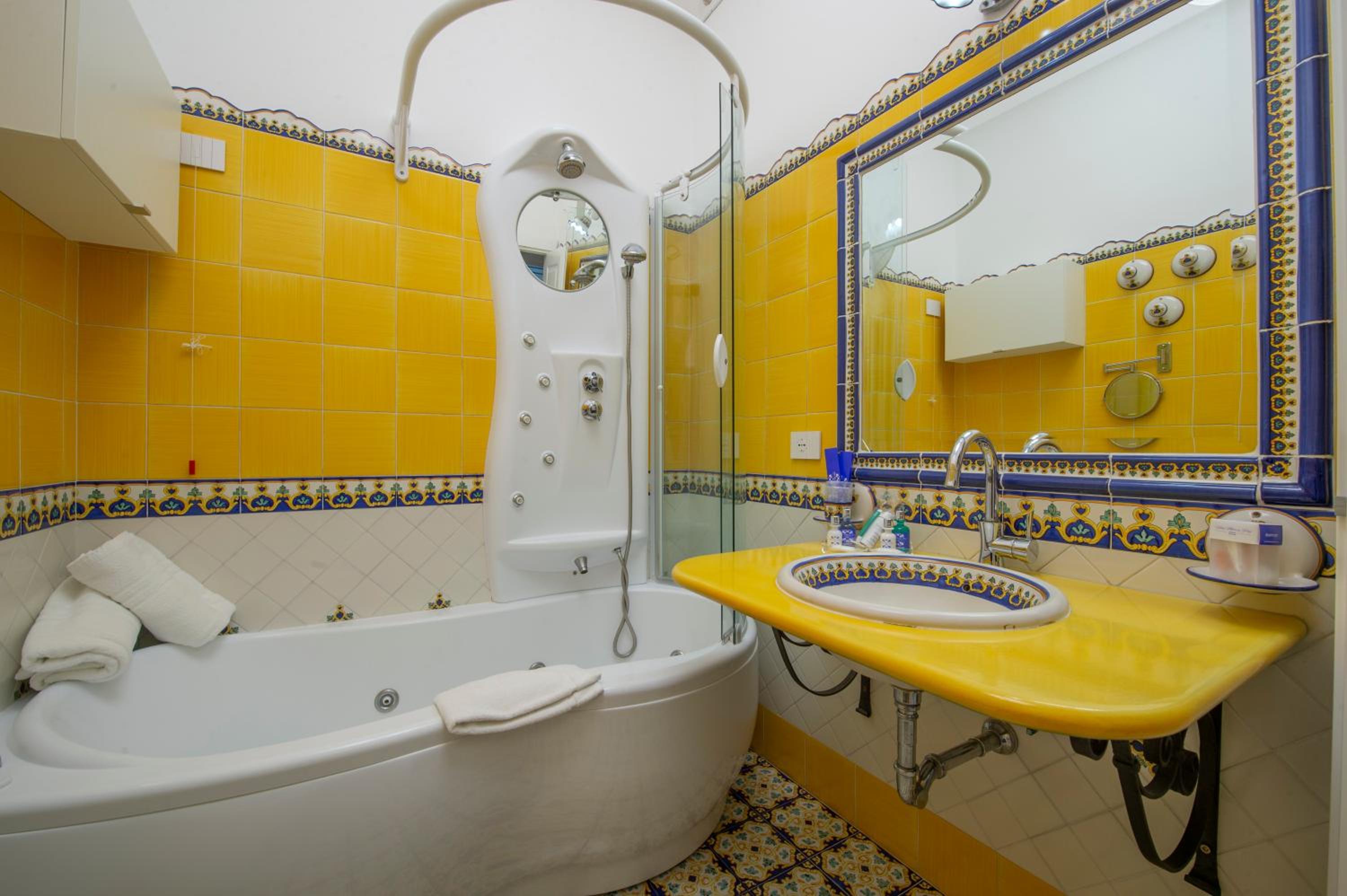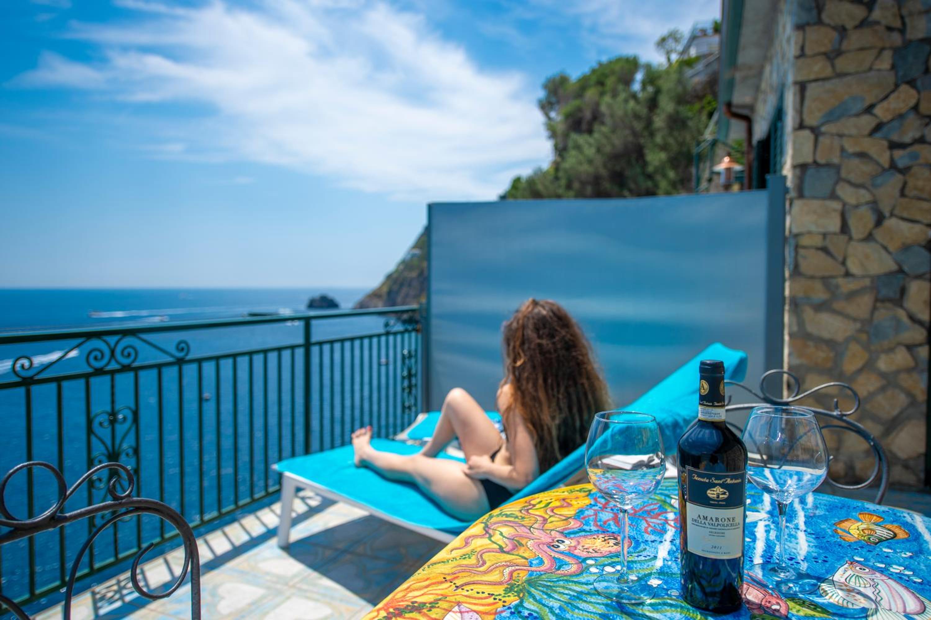 Villa Maria Pia stands proudly on a cliff-top, offering a sun terrace with stunning panoramic views of the Amalfi Coast. The rooms feature traditional Mediterranean decor, Vietri tiled bathrooms, and sea views, providing a truly authentic experience.