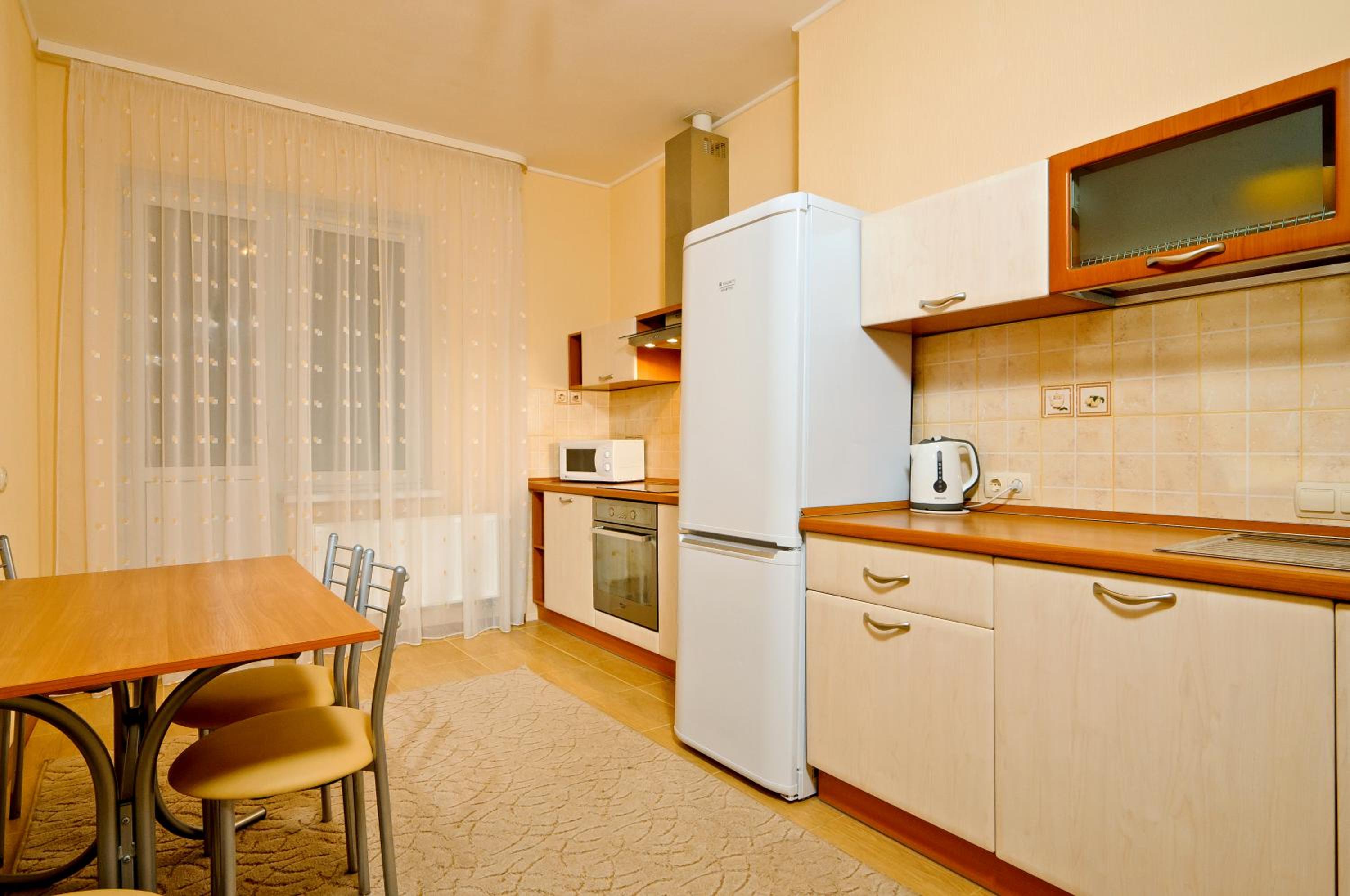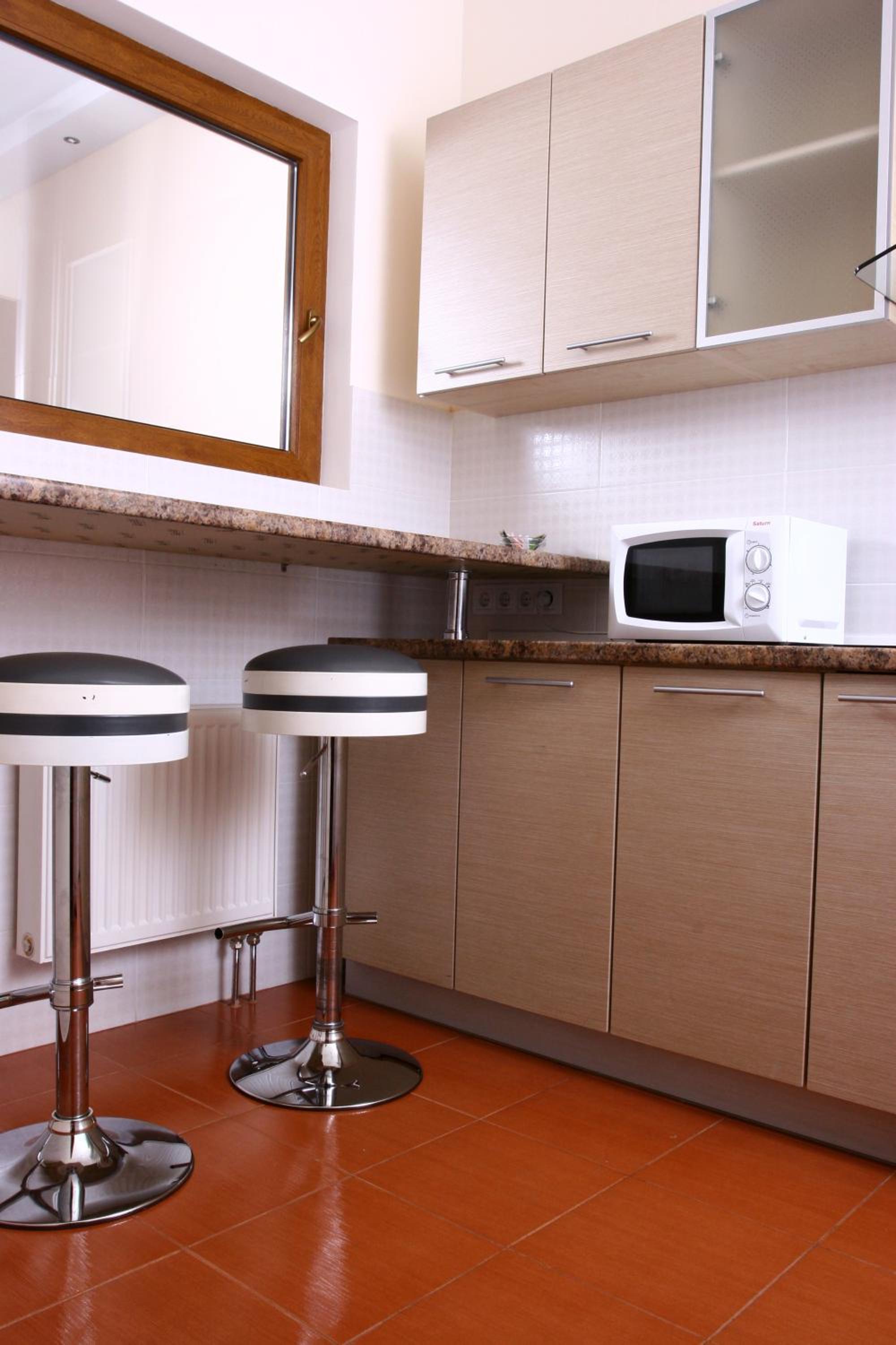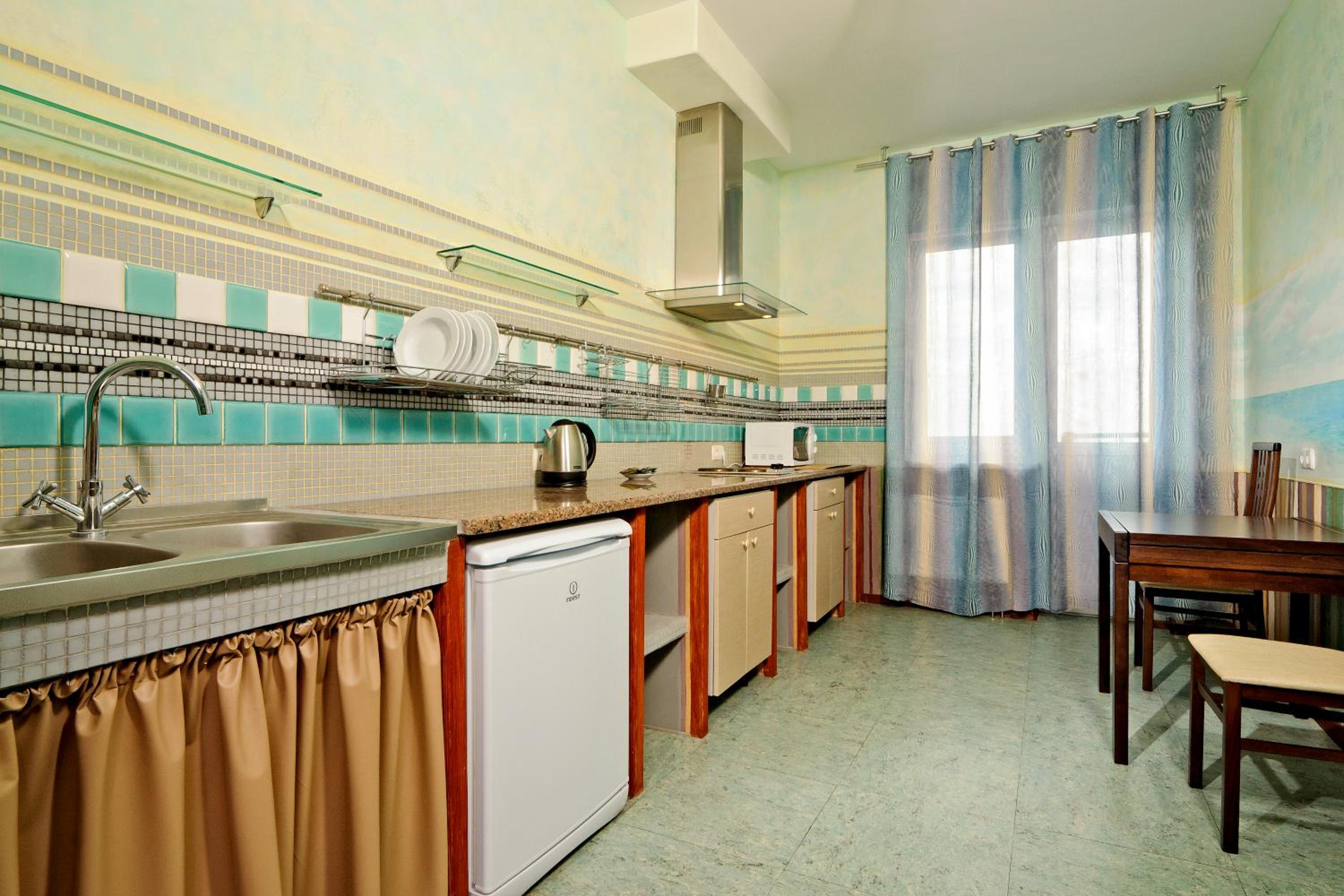 Prepare meals in the kitchenette with a fridge, stove, kettle, and microwave. Benefit from a washing machine, 24-hour front desk, and private parking. Explore nearby attractions like KyivExpoPlaza Exhibition Centre, Olympic Stadium, and Kiev Zoo easily accessible from Lukyanovskaya Metro Station.