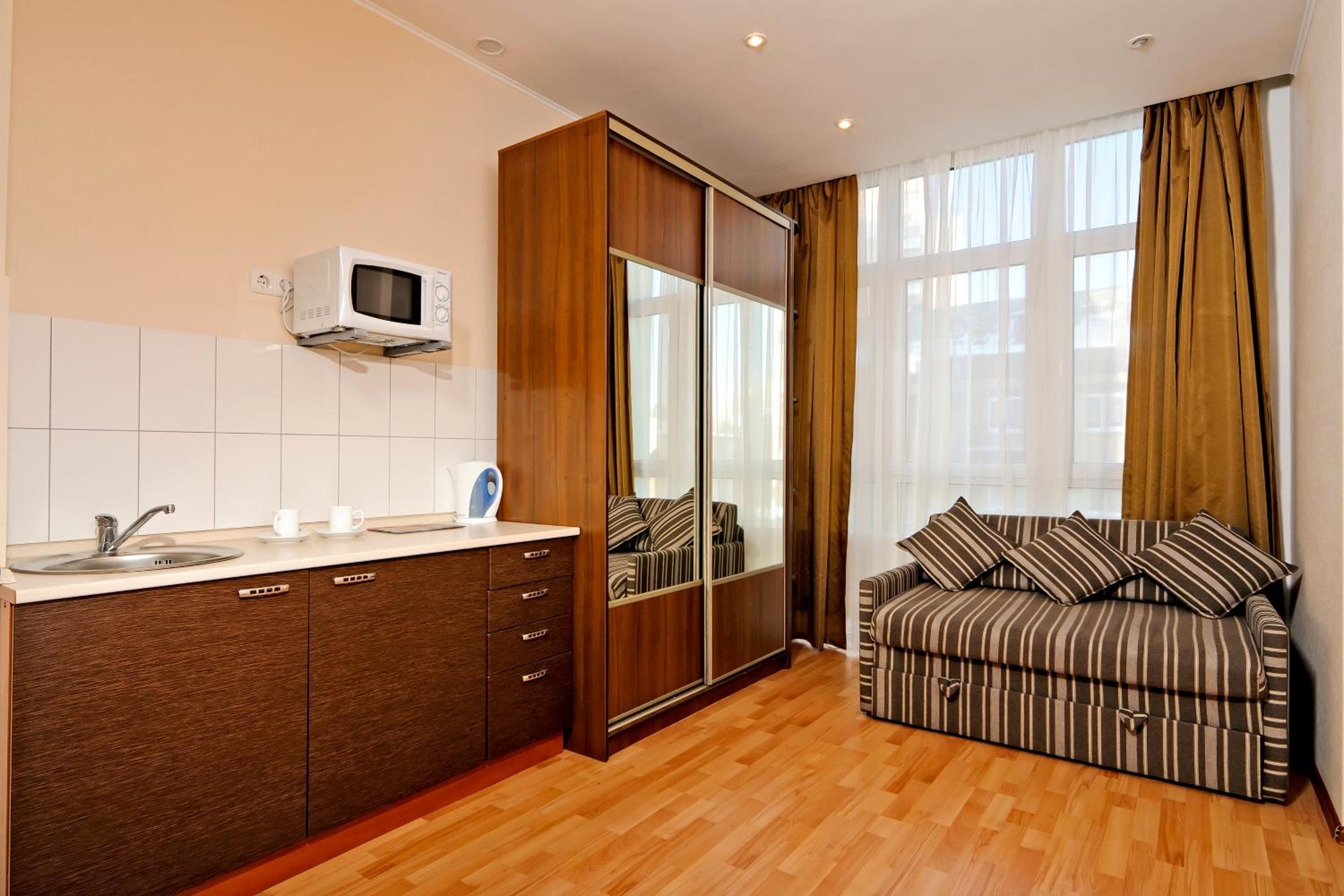Experience comfort and convenience at Lukyanovsky Hotel in Kiev. Our rooms feature orthopaedic mattresses, free Wi-Fi, and a fully equipped kitchenette. Enjoy modern décor, flat-screen TVs with DVD players, and air conditioning in our 22-storey building.
