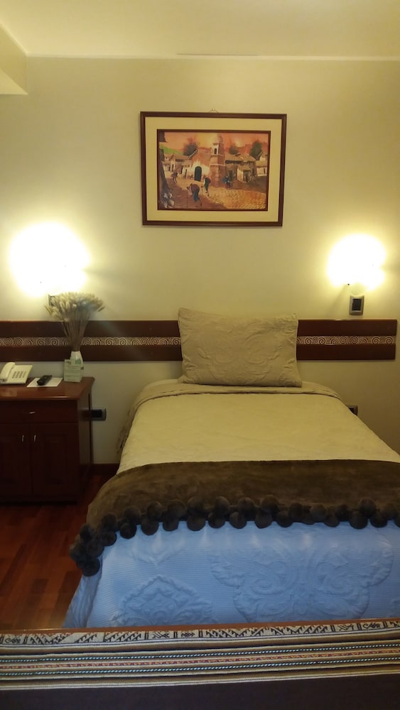 The hotel lobby was cozy and had a good ambiance. The room was adequate. There was nothing available on the TV, but I did not come to Cusco to watch TV. A decent room for a fair price..