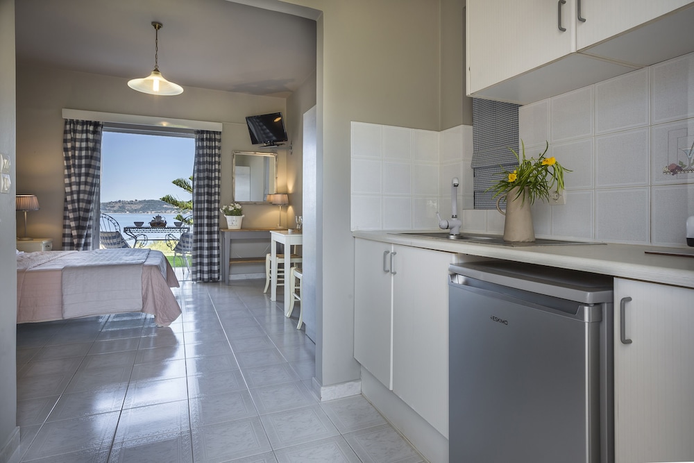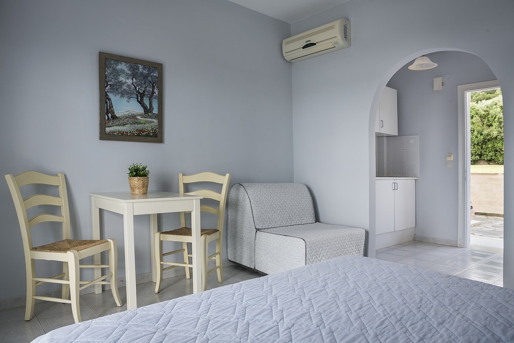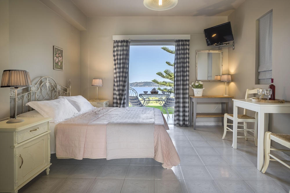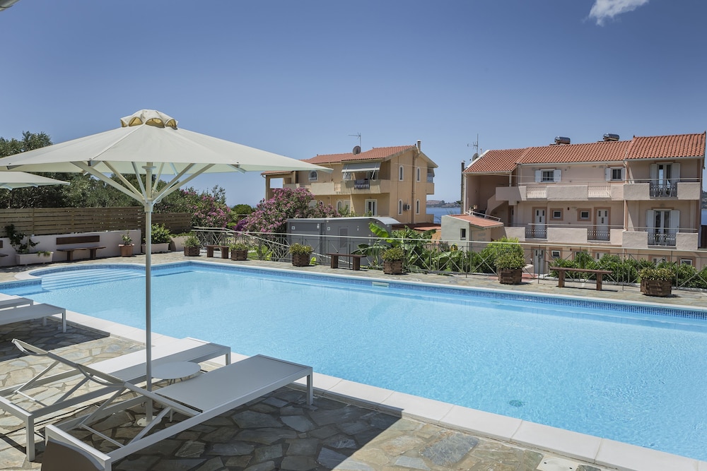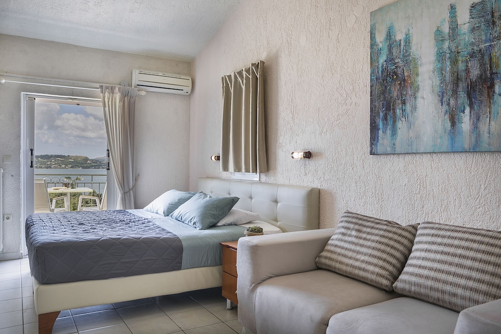 Property was clean, beds were comfy and views of apartment were beautiful especially at sunset. The staff were brilliant- polite, kind and helpful. Breakfast was good. The apartments are close by argostoli town, 30-35 min walk although it is a dark walk at night with no lights- can use phone light or taxi on way back.