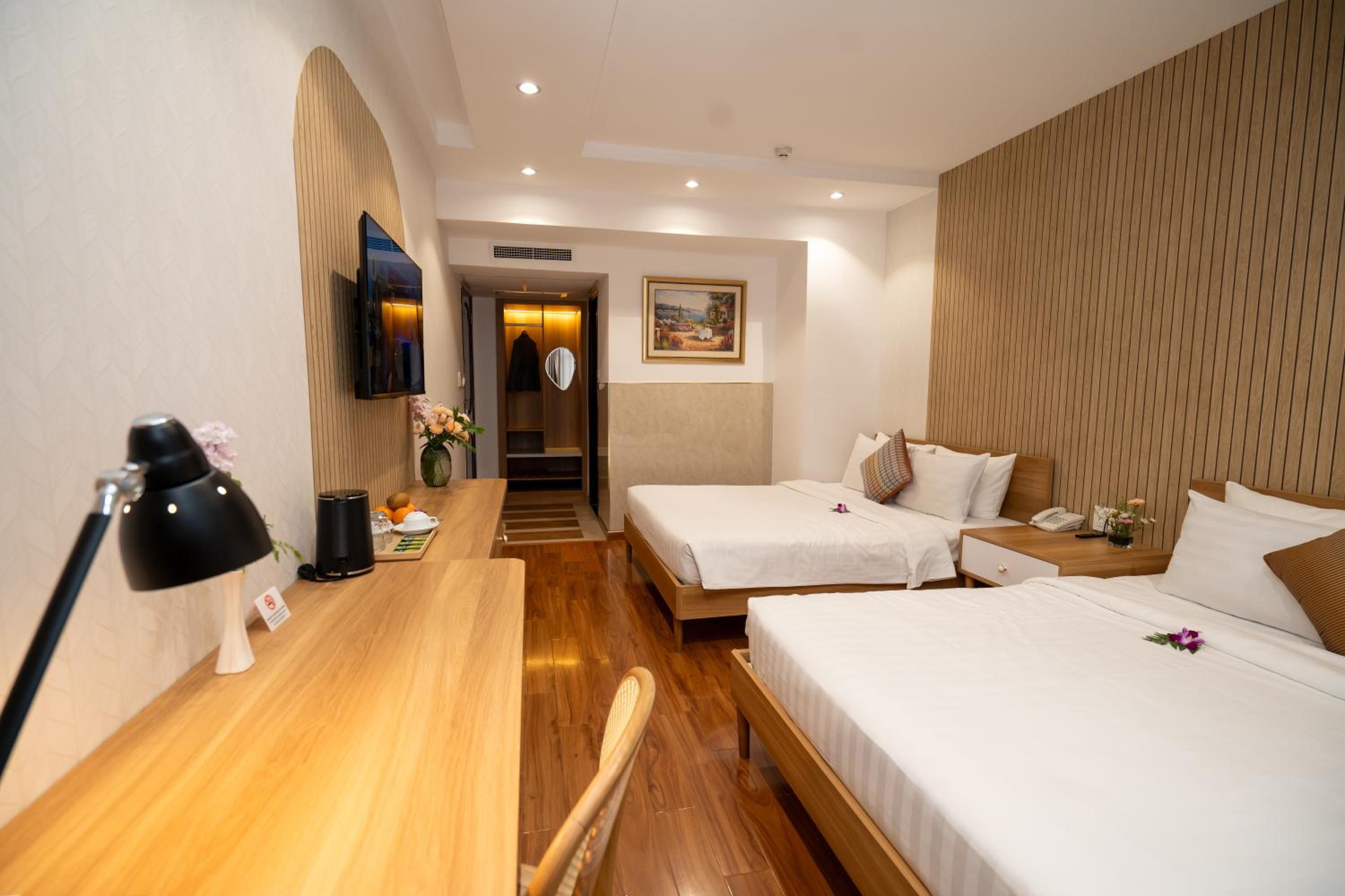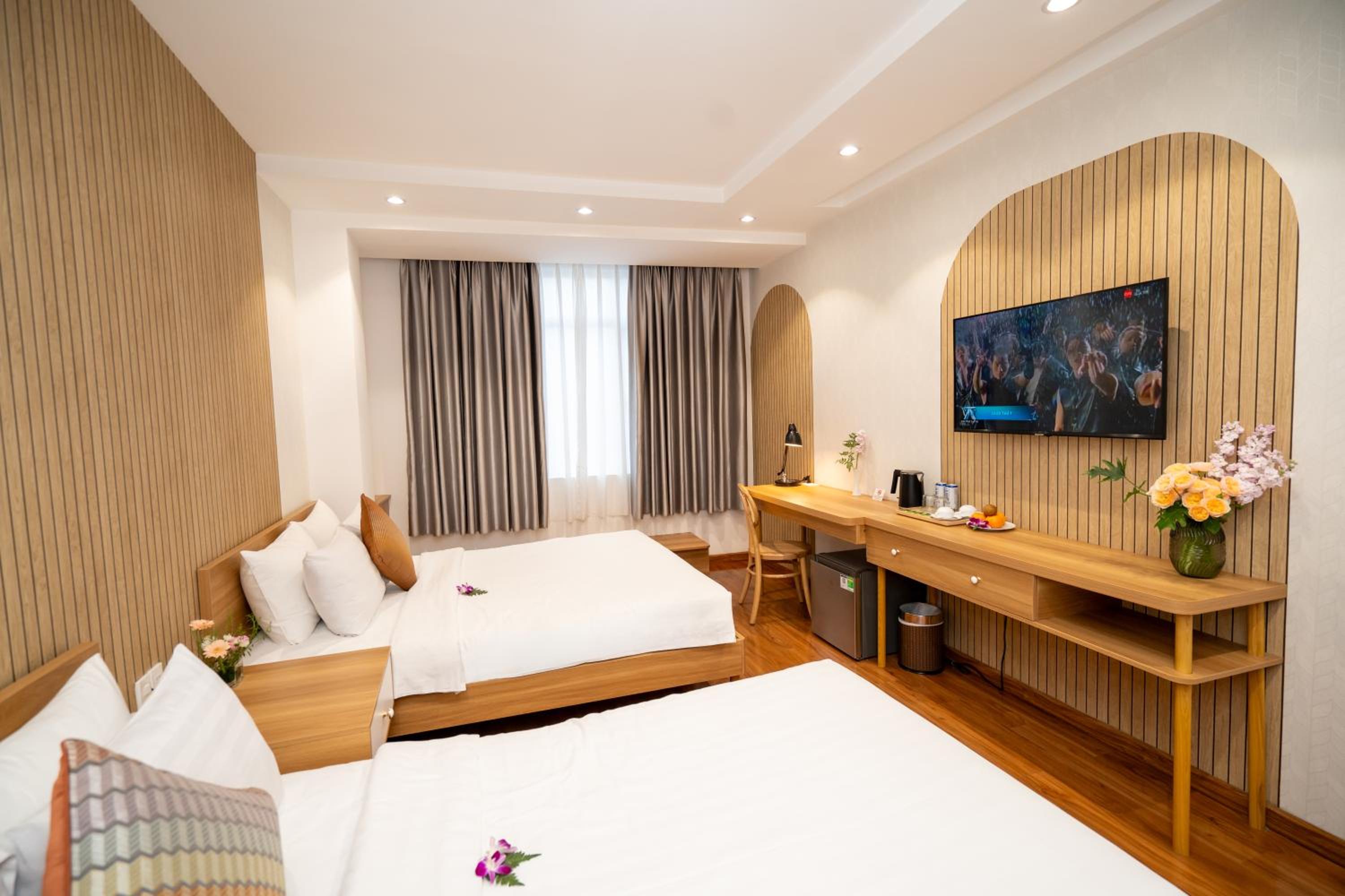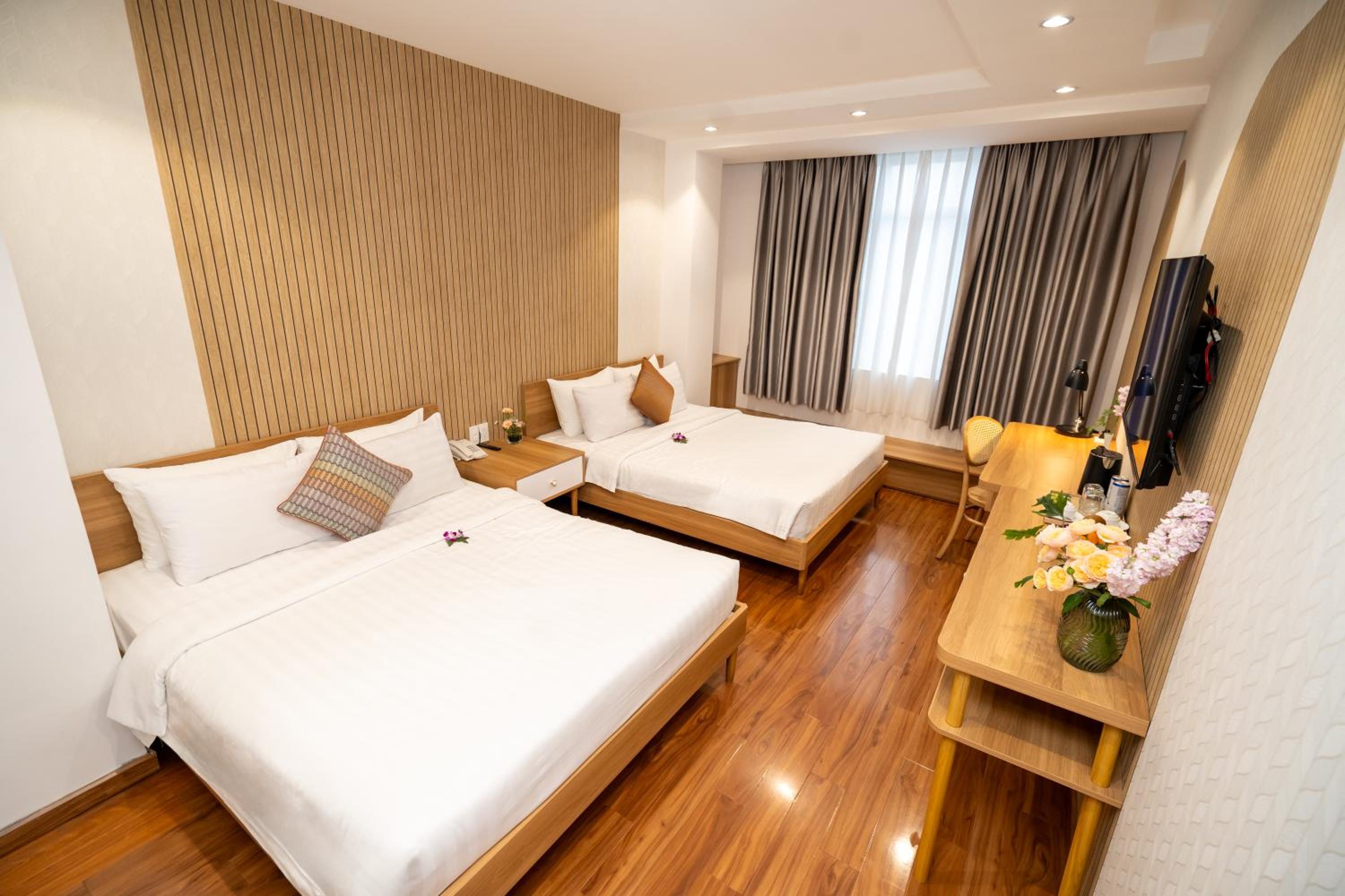 Cap Town Hotel, located just steps from Mariamman Hindu Temple in Ho Chi Minh city, offers bright rooms with air conditioning for a comfortable stay. Each room features pleasant white-washed walls, classic wood furnishings, and modern amenities including a personal safe, flat-screen TV, and minibar.