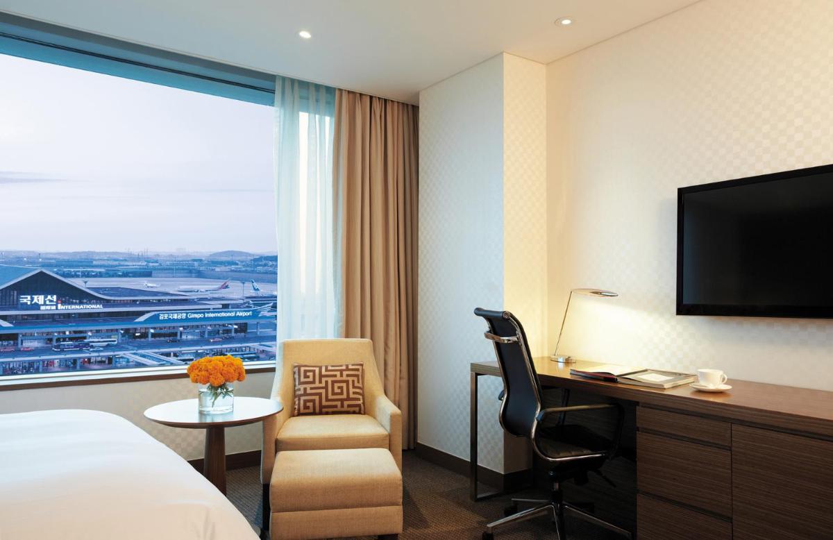 I had a layover in Seoul, arriving at Gimpo airport leaving from the Incheon airport. This hotel is 5 minutes walking distance away from the Gimpo airport. It is also connected to the subway with easy access to both Seoul downtown and the Incheon airport. Room was very nice, clean and spacious. Bet was very comfortable. My room had a nice view of the runway. There is a shopping center complex and hotel is within the complex