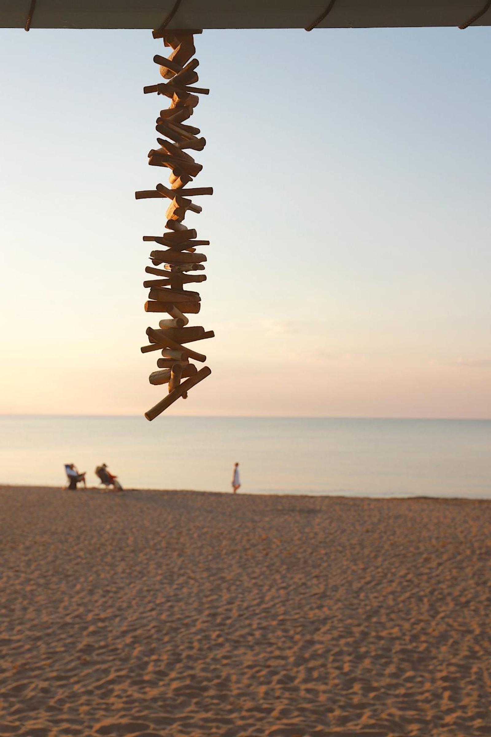 Om half zeven een bulldozer die over het strand reed, vooruit en achteruit (dus achteruitsignaal dat constant piepte).