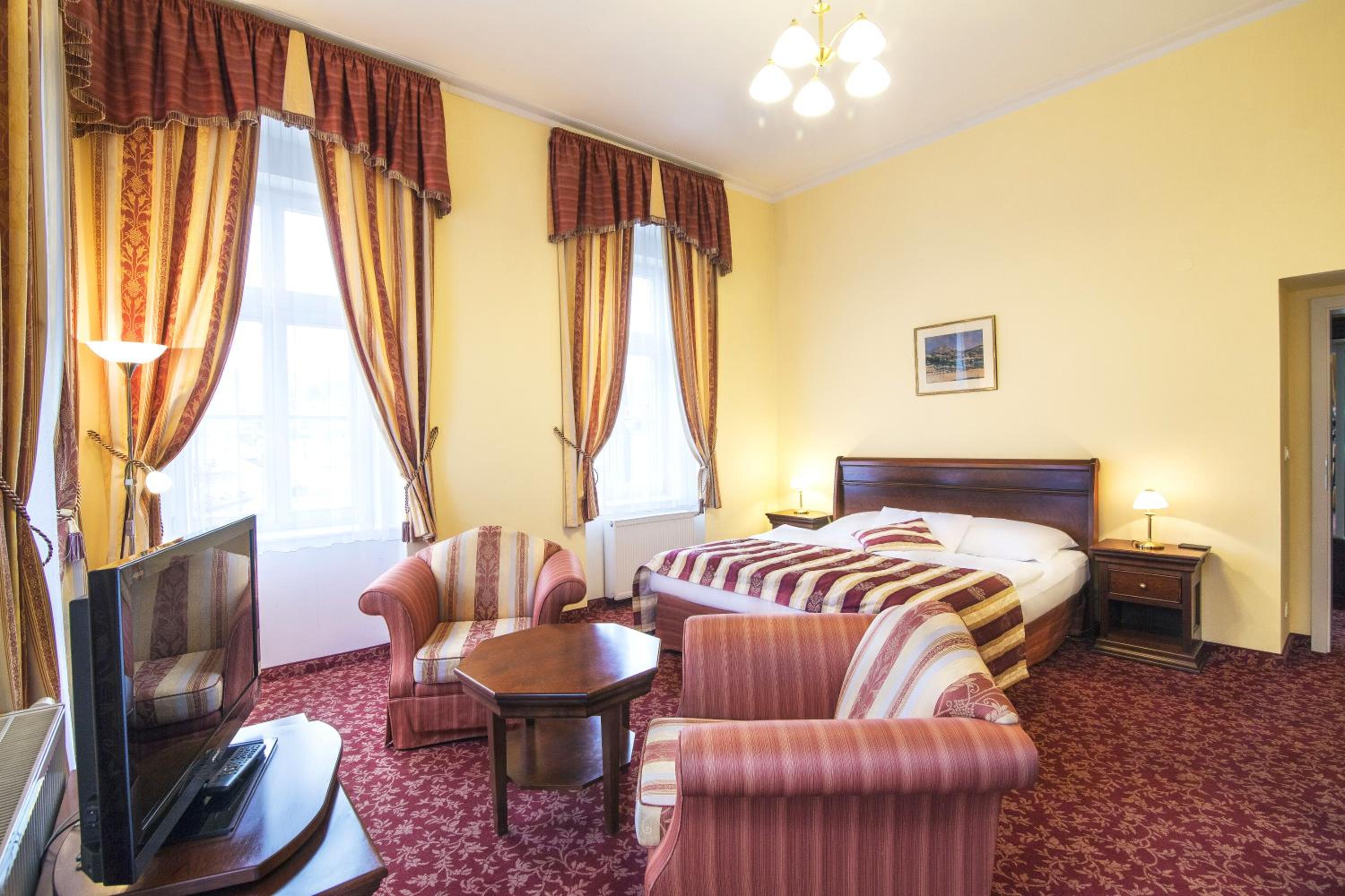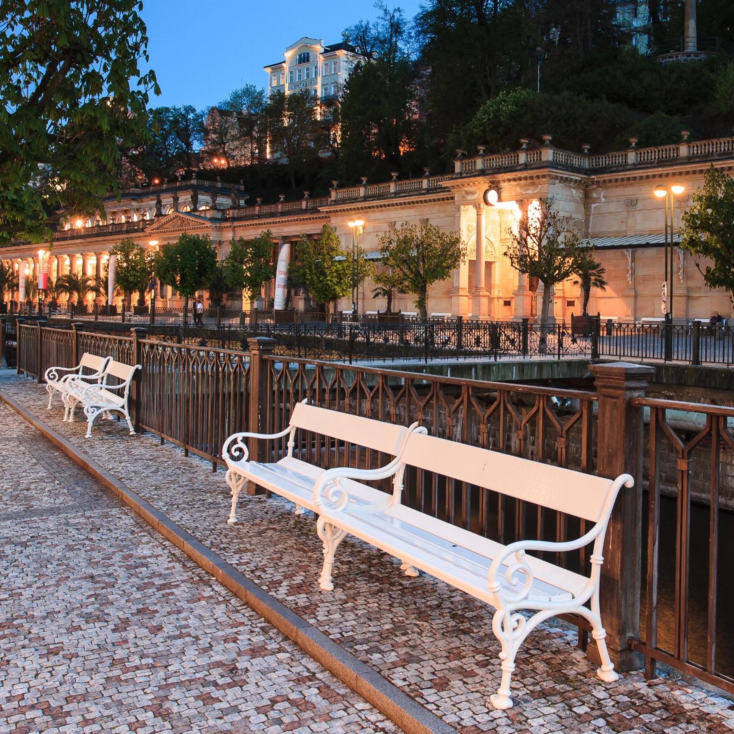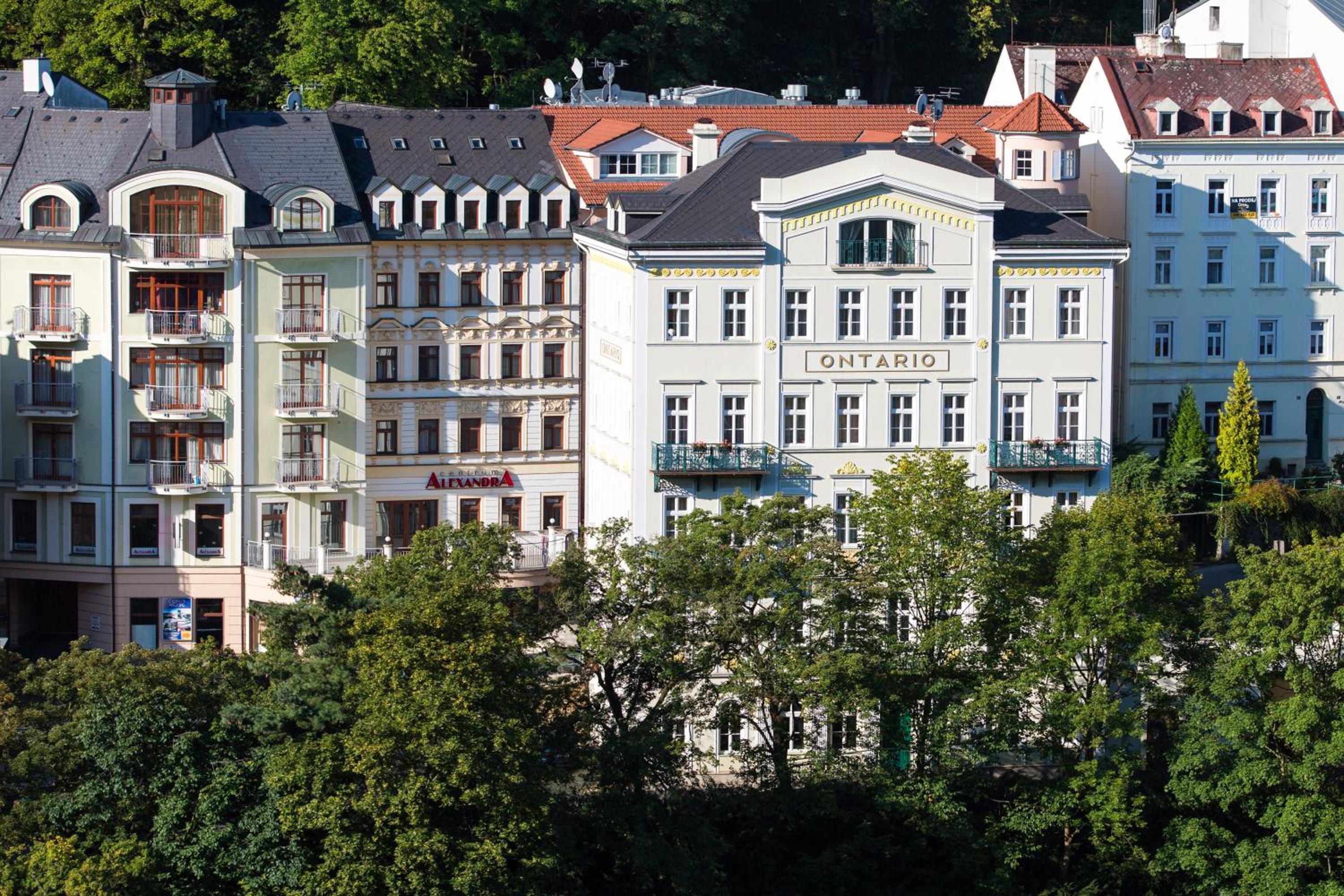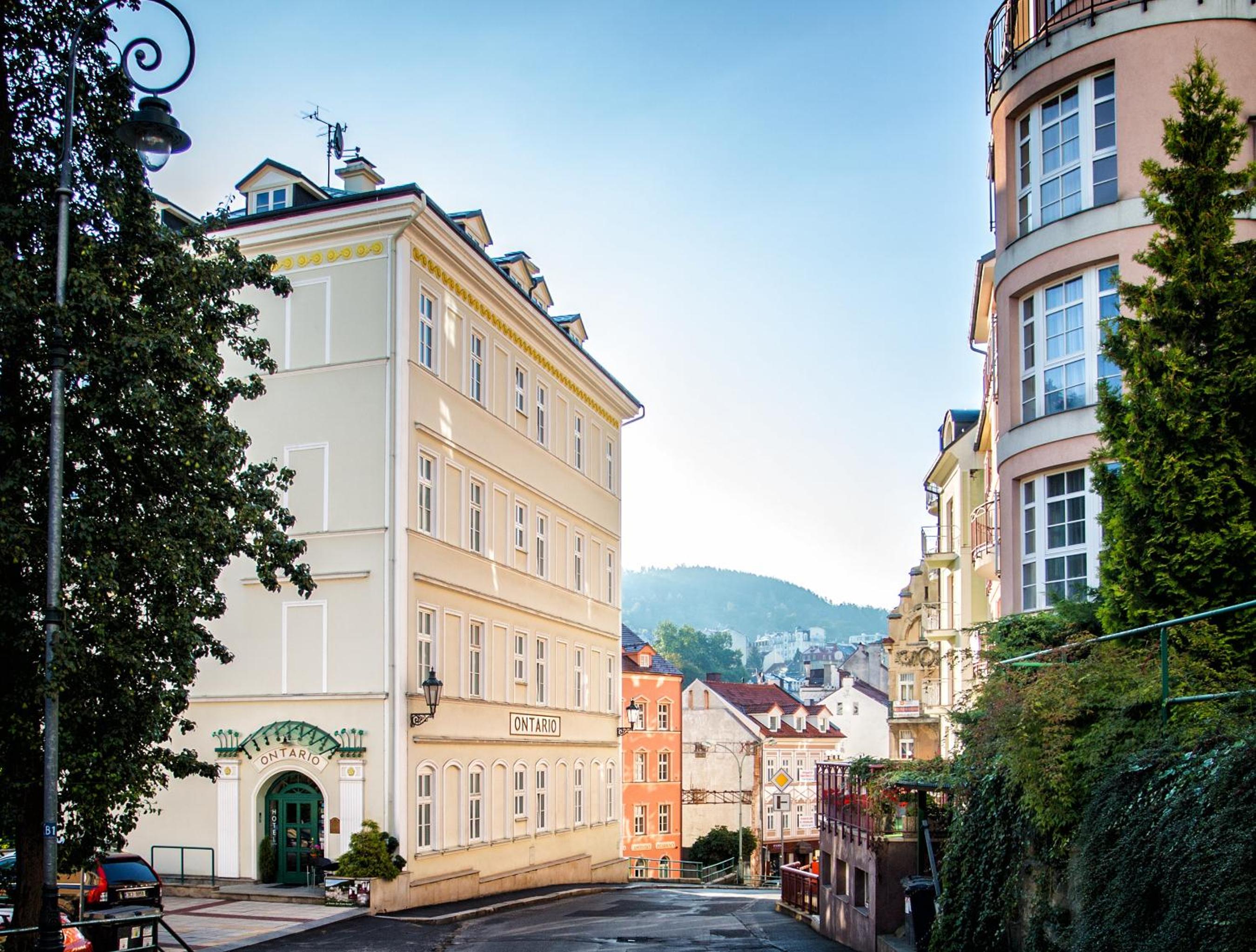 Experience the historic charm of the three-and-a-half-star Hotel Ontario, with a 150-year tradition overlooking the famous Mill Colonnade in the heart of Karlovy Vary. Wake up to spectacular views of the city or lush greenery from every room. Enjoy the convenience of spacious accommodations equipped with a seating area, flat-screen TV, wardrobe, fridge, and kettle. Benefit from a camera-guarded private car park and pet-friendly policy. Indulge in a buffet breakfast and explore nearby restaurants, cafes, mineral springs, and spas just steps away. Book now for a memorable stay at Hotel Ontario.