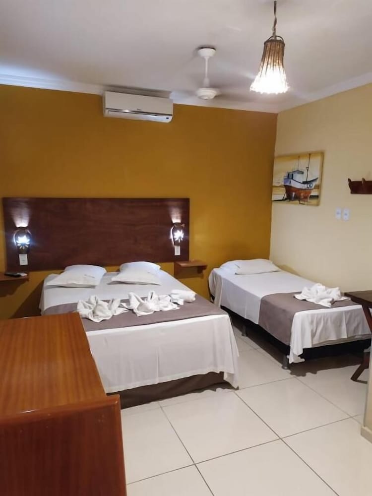 Café muito repetitivo cheguei p tomar café as 9h já não tinha quase nada e o café era até às 9:30 quando deu 9:15 a atendente já estava tirando oq ainda restava até a garrafa de café não esperou nem eu finalizar nem perguntou se eu ainda ia pegar algo, faltou água no banheiro e quando pedi p recepcionista verificar ele disse q ia pedir p manutenção verificar somente no outro dia, o controle da tv pedi no dia que cheguei o recepcionista disse que ia chegar no mesmo dia passei 5 dias e esse controle não chegou não tinha pano no chão do banheiro tive q pedir várias vezes p poder alguém colocar o pano, as pessoas dos outros quartos saiam falando e parecia que estavam falando dentro do quarto muito barulho, lençol SUPER fino e como não levei coberta passei frio 😅 tive que comprar uma manta pelo menos nisso não posso reclamar o ar condicionado super ótimo e ficava na direção da cama, p passar só um ou dois dia é bom pelo custo benefício mas p passar mais não recomendo quarto muito pequeno e também pensei q ia ficar hospedada no hotel quando cheguei fui levada p anexo que fica do outro lado da rua nada parecido cm oq me foi oferecido.