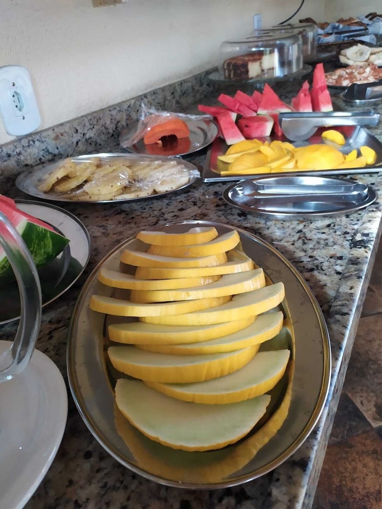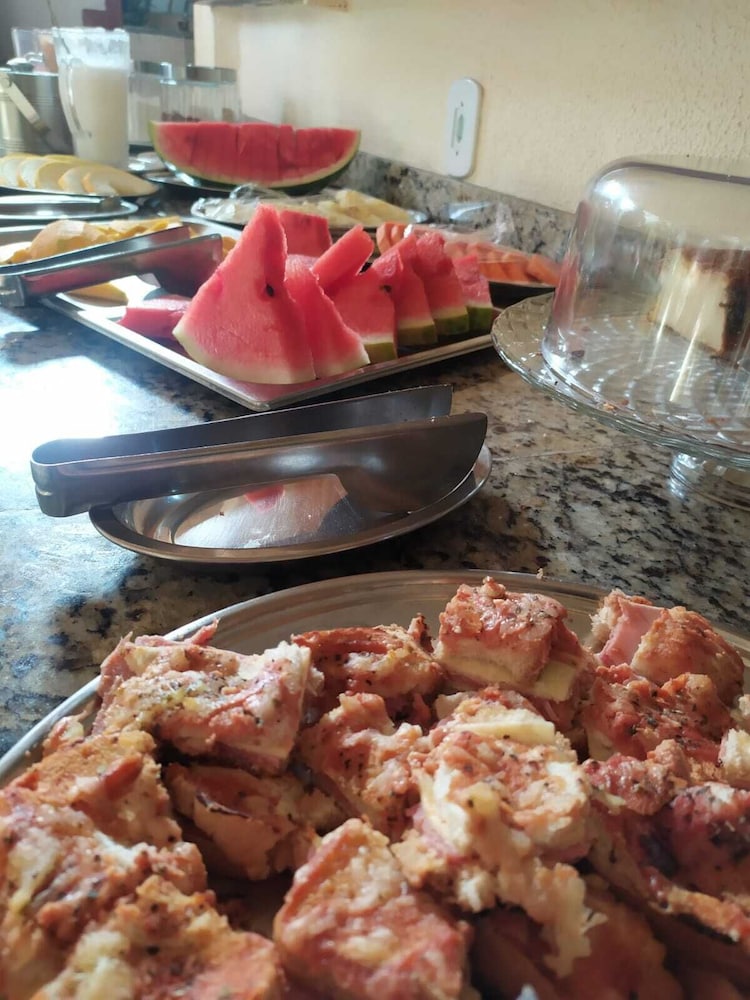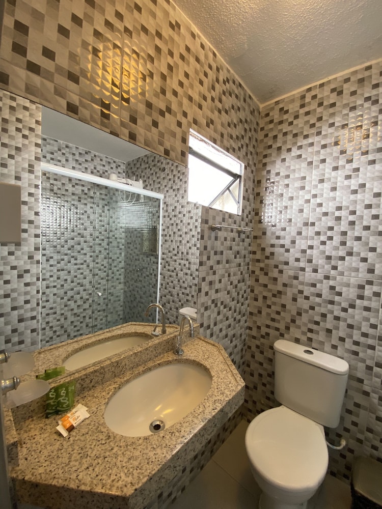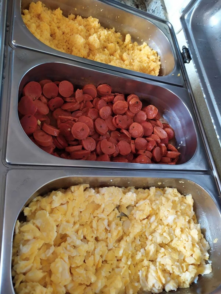 Com conforto, quarto bem simples , chuveiro do quarto em que ficamos quase não saia água, não tinha lugar onde colocar nossos itens de higiene pessoal, como sabonete, shampoo etc. sei que luxo e conforto fica bem mais caro, mas a minha sorte é que foi apenas uma diária, confesso que não ficaria mais dias,mas vale o custo que pagamos. Café razoavelmente bom, condiz com o valor pago. Atendimento da recepção (mulher) e da cozinha (mulher) deveria ser mais receptivos , estavam numa cara de quem comeu e não gostou ! Clientes gostam de serem recebidos com carinho e sorriso no rosto e na voz, isso faz com que nós sentimos em casa.