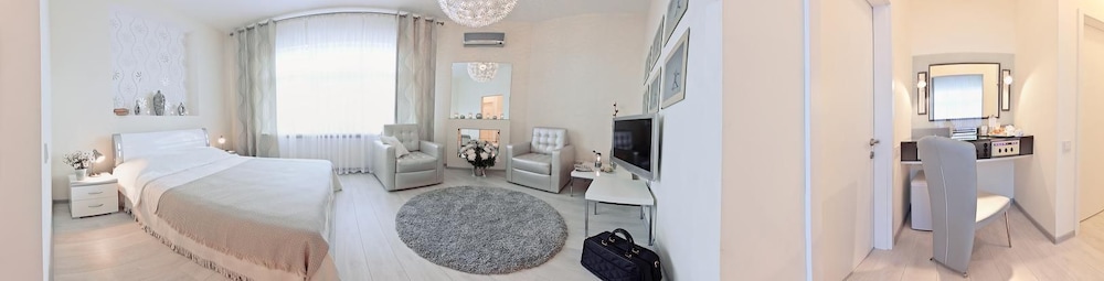 Hotel niezwykle klimatyczny i pięknie urządzony w stylu filmowym. Idealny dla minimalistów i miłośników kina. Szalenie miła i pomocna obsługa. Obiekt położony z dala od centrum, ale w dobrym miejscu pod względem komunikacji. Łatwo dostać się stamtąd do centrum Odessy (tramwajem 18 albo marszrutką 185). W pobliżu sklepy, a do najbliższej plaży ok. 10 minut spacerem (morze widoczne z okna hotelu). Plaża Arkadia położona ok. 4-5 przystanków dalej. Pobyt bardzo udany!