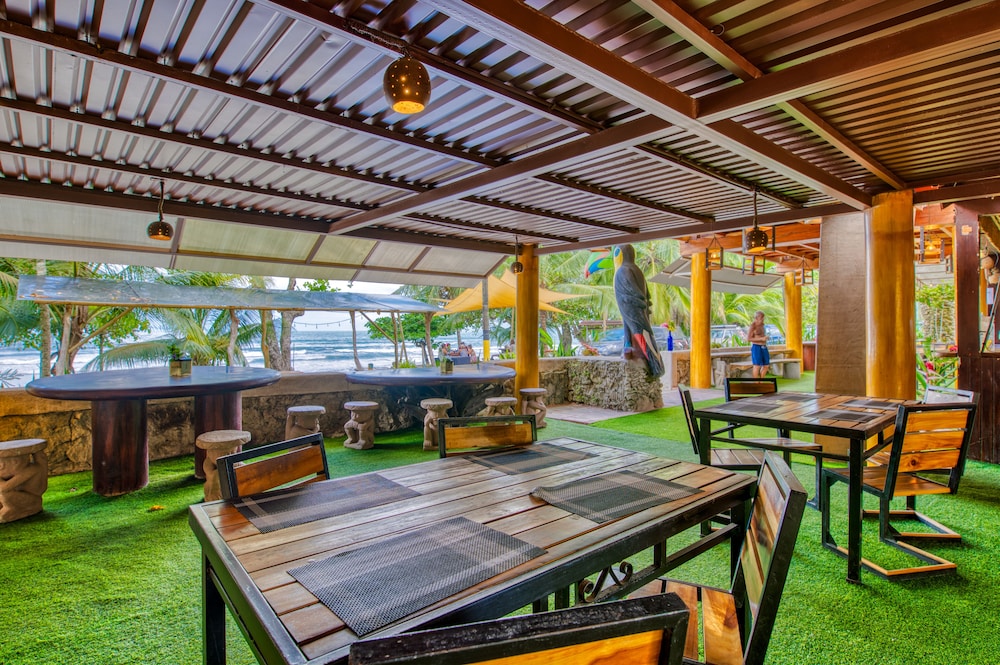 Very nice laid back beach vibe..watch the water and listen to the waves while eating a meal. A no frills place that is kept up nicely and has an attractive appearance. Food and staff were wonderful. Rooms need softer pillows and walls are a bit thin but the layout was absolutely great and the room had a patio with a hammock chair as well as table and comfortable wooden outdoor chairs to relax in while listening to the birds and observing wildlife and the amazing colorful frogs and family of kittens. Staff were young enthusiastic and professional