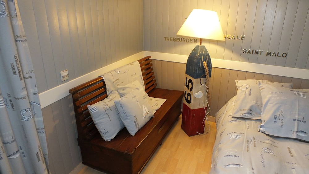 A fun, clean, nautical themed room located on the beach at Tregastel with wonderful views of the intriguing stones. Delicious pastries, delicious dinners and walking distance to more interesting beaches and stones.