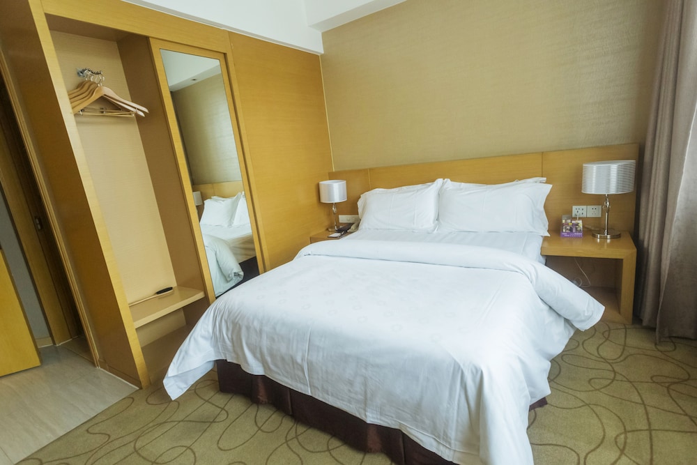 出張で一泊だけしました。すぐ隣に大きなショッピングモールや商店があり、賑わいのあるエリアです。部屋は写真では綺麗に見えましたが、実際に宿泊した部屋は汚れも目立つ部屋でした。中国でこの値段の割には期待はずれでした。英語を話せるスタッフは1人もいません。次回は別のホテルに泊まります。