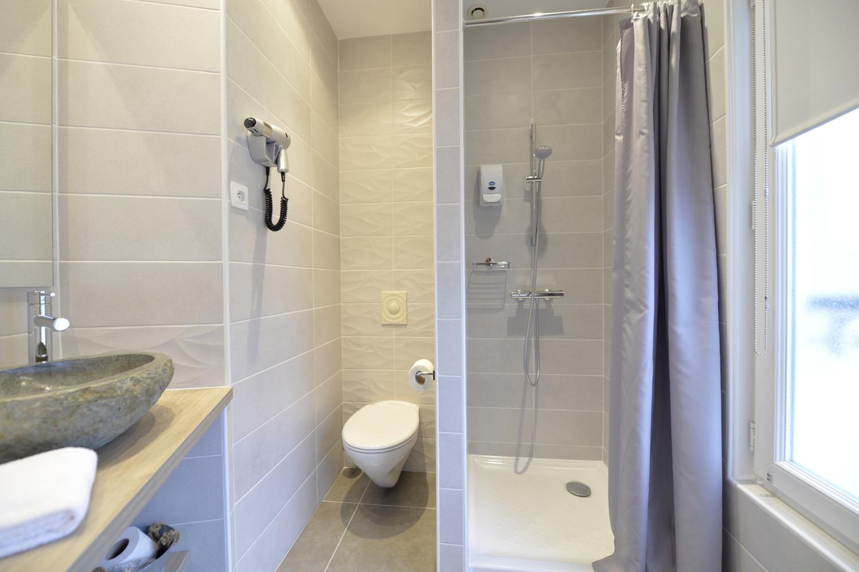 Enjoy the cozy and bright rooms at France Hôtel, offering a serene view of the inner courtyard.