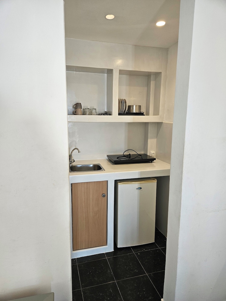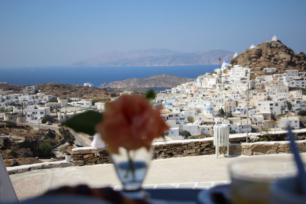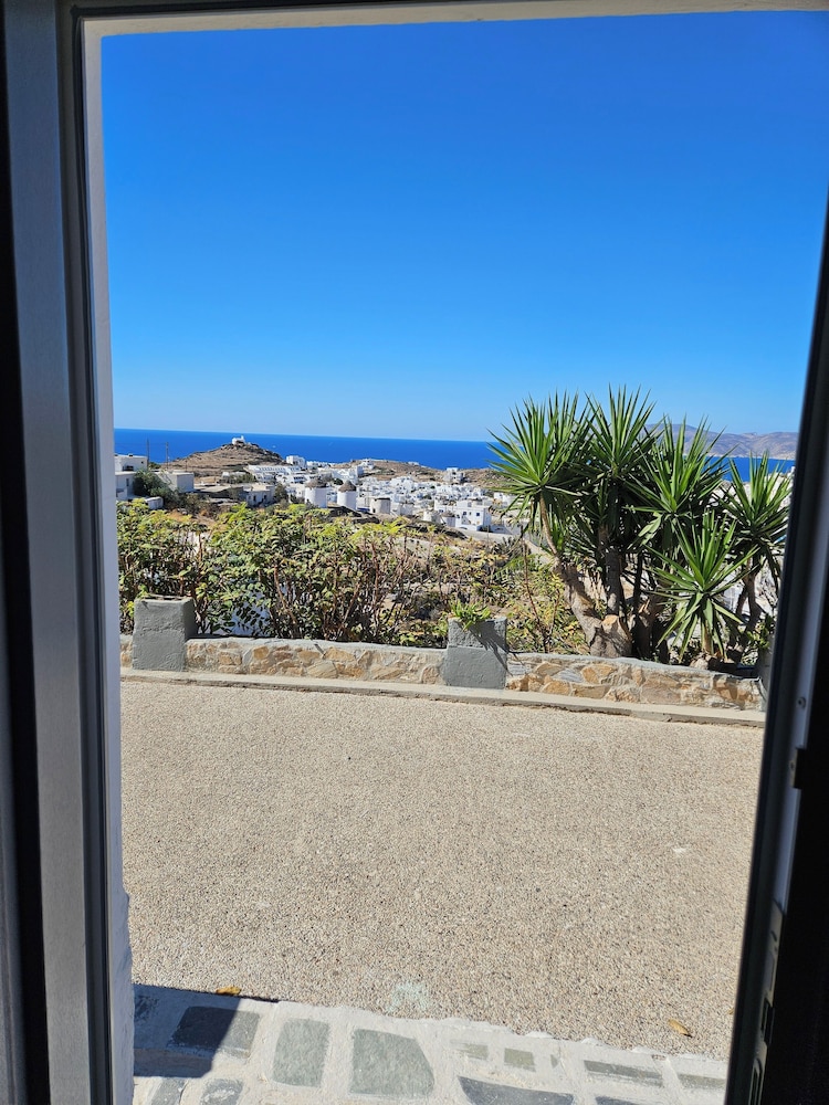 Excellent location with close walking distance to Ios town, a mini market and to the bus stop if adventuring out. Beautiful pool terrace area with impressive sunset views over Ios and a convenient pool bar with a range of drinks and snacks available - all reasonably priced. There was also a variety of massage services available to pre book during your stay. Super friendly staff that are happy to help. Free transfer to and from the port was a brilliant service included. Hotel breakfast was basic (tea/coffee/juice/egg/toast/pastries/jams) but seemed reasonable at €6pp if you did not fancy the walk to town to find a place each morning. Room had a mini fridge and good AC which was useful. The family running the hotel also own a restaurant called The Mills where they gave us 10% off our meal as hotel guests, we highly recommend using this incentive as the food was really good and great value.